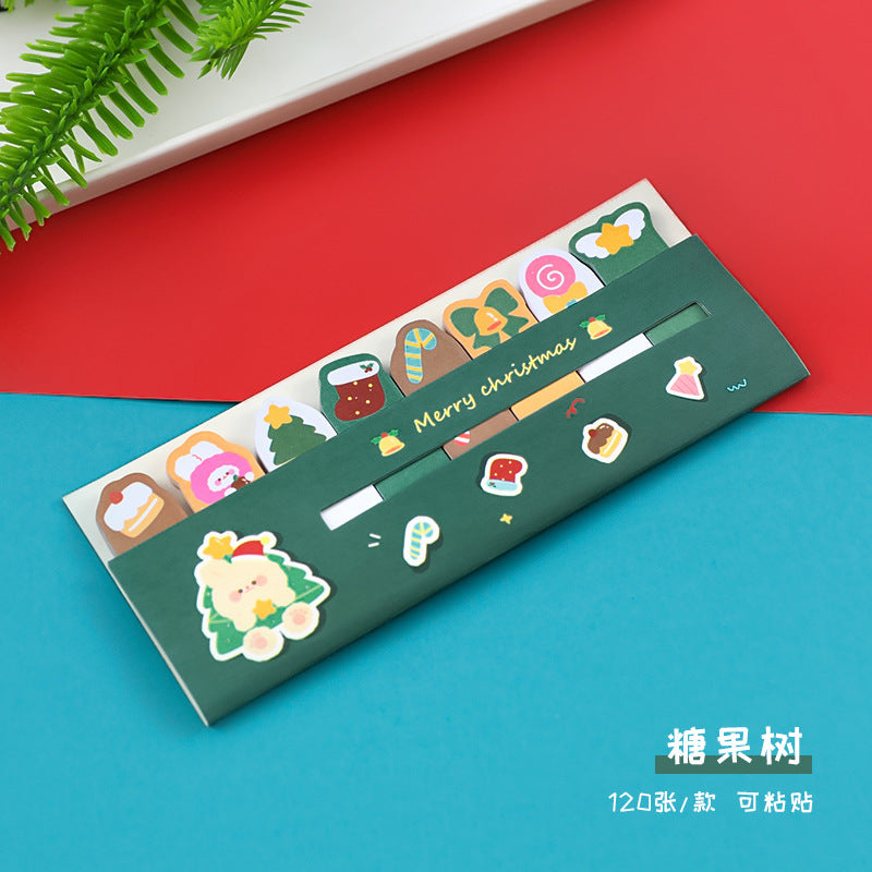 Cute Christmas Themed Sticky Notes Set, Cartoon Artistic Index Post-it Notes for Students and Creatives