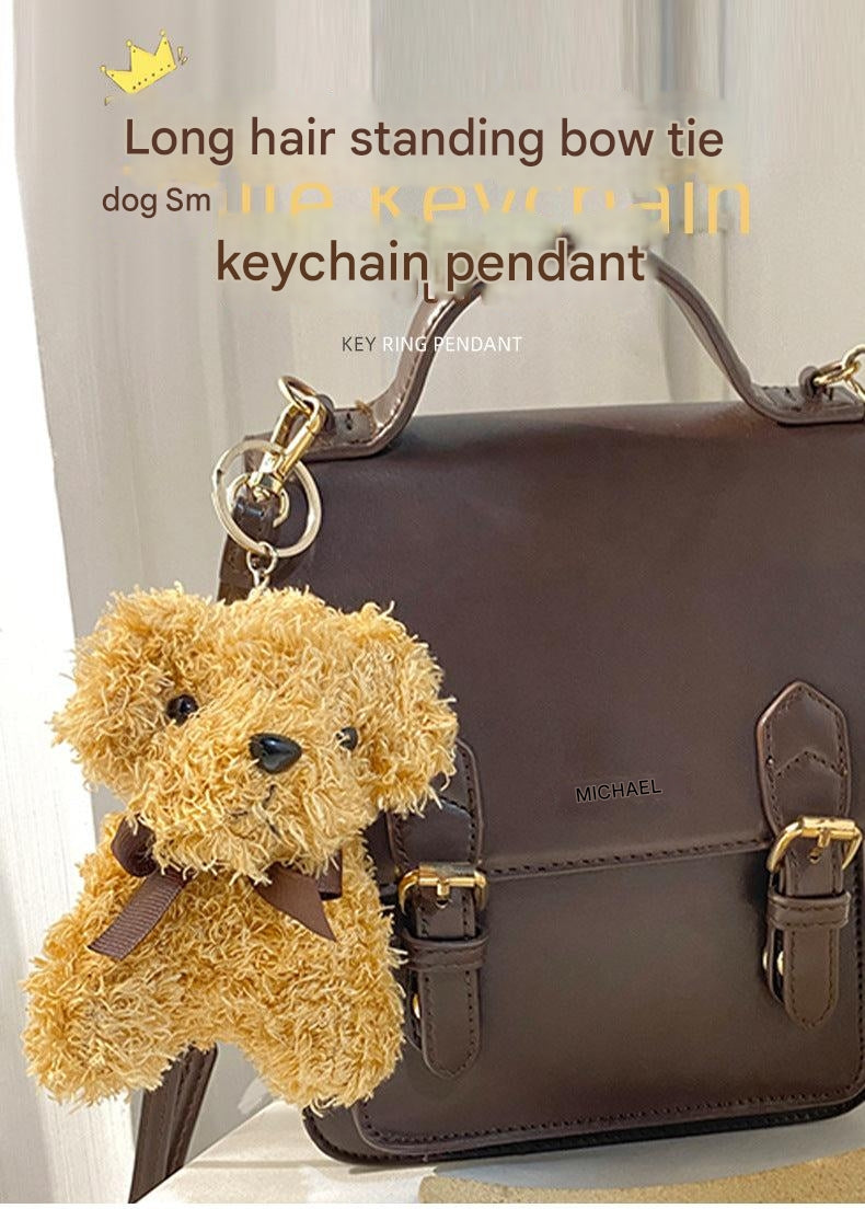 Cute Long-Hair Dog Plush Keychain, Realistic Teddy Bear Fur Toy, Car and Bag Hanging Ornament