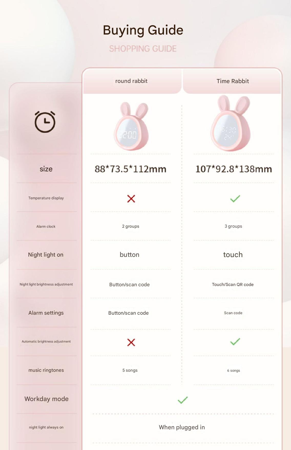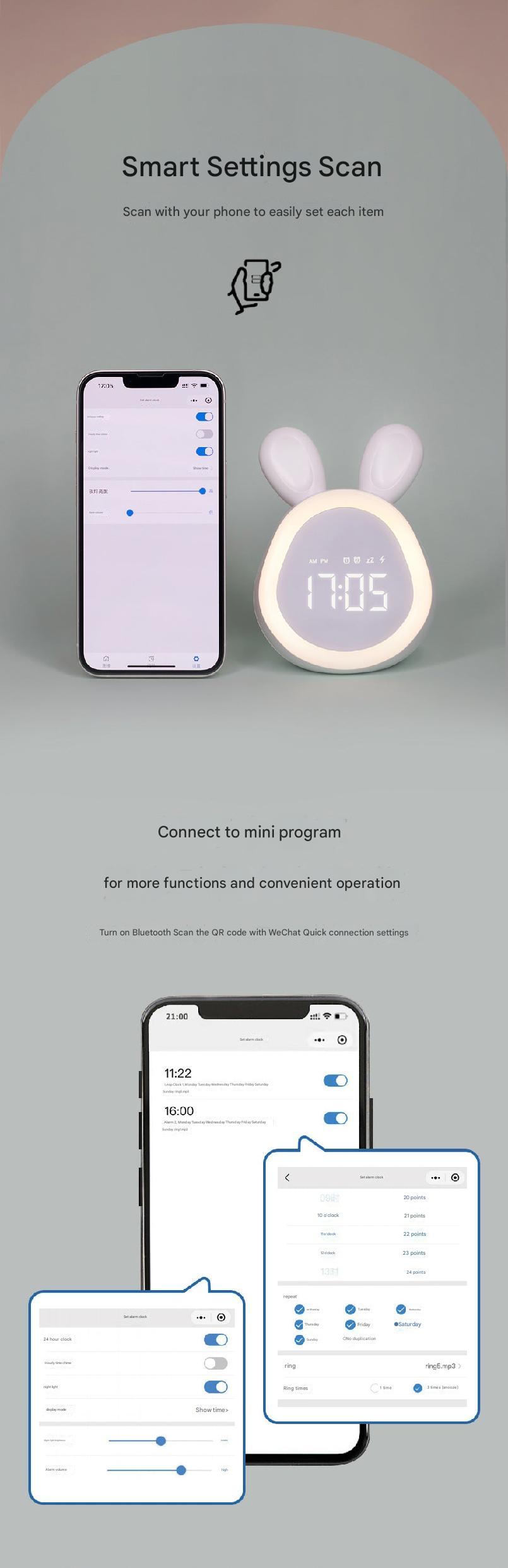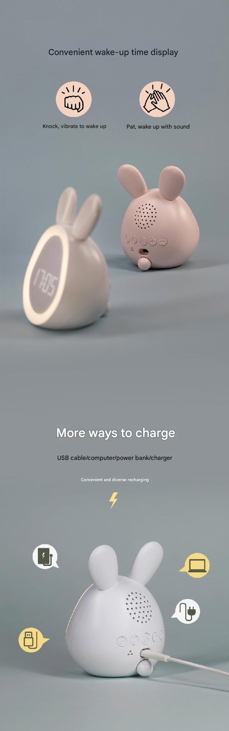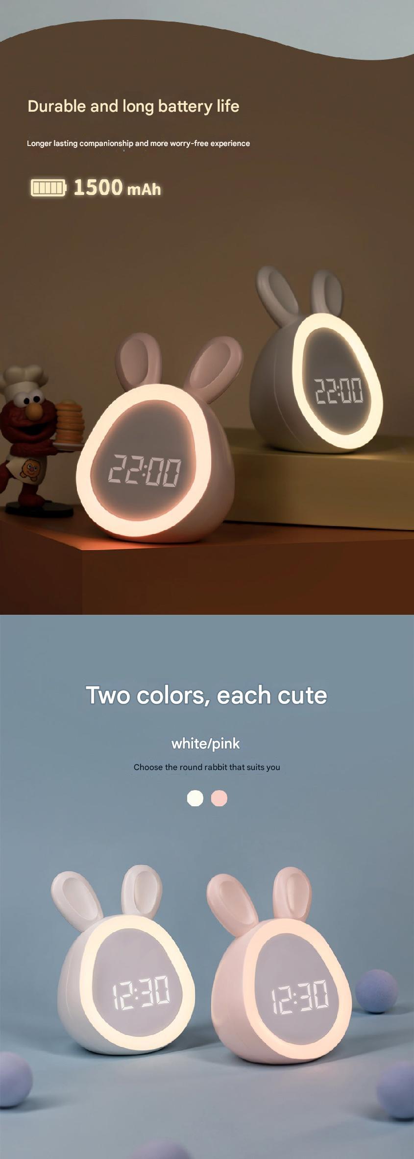 • Adorable Bunny Design: Perfect for children, this cute bunny-shaped alarm clock adds a playful touch to any room.