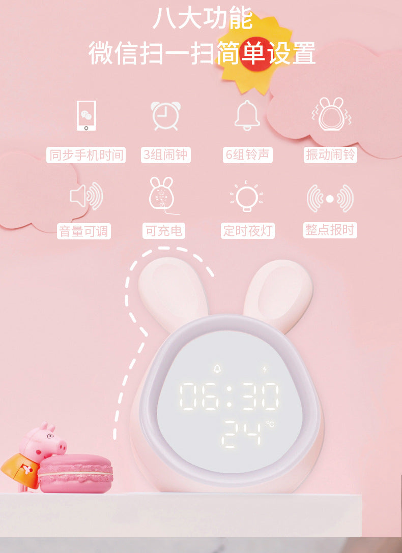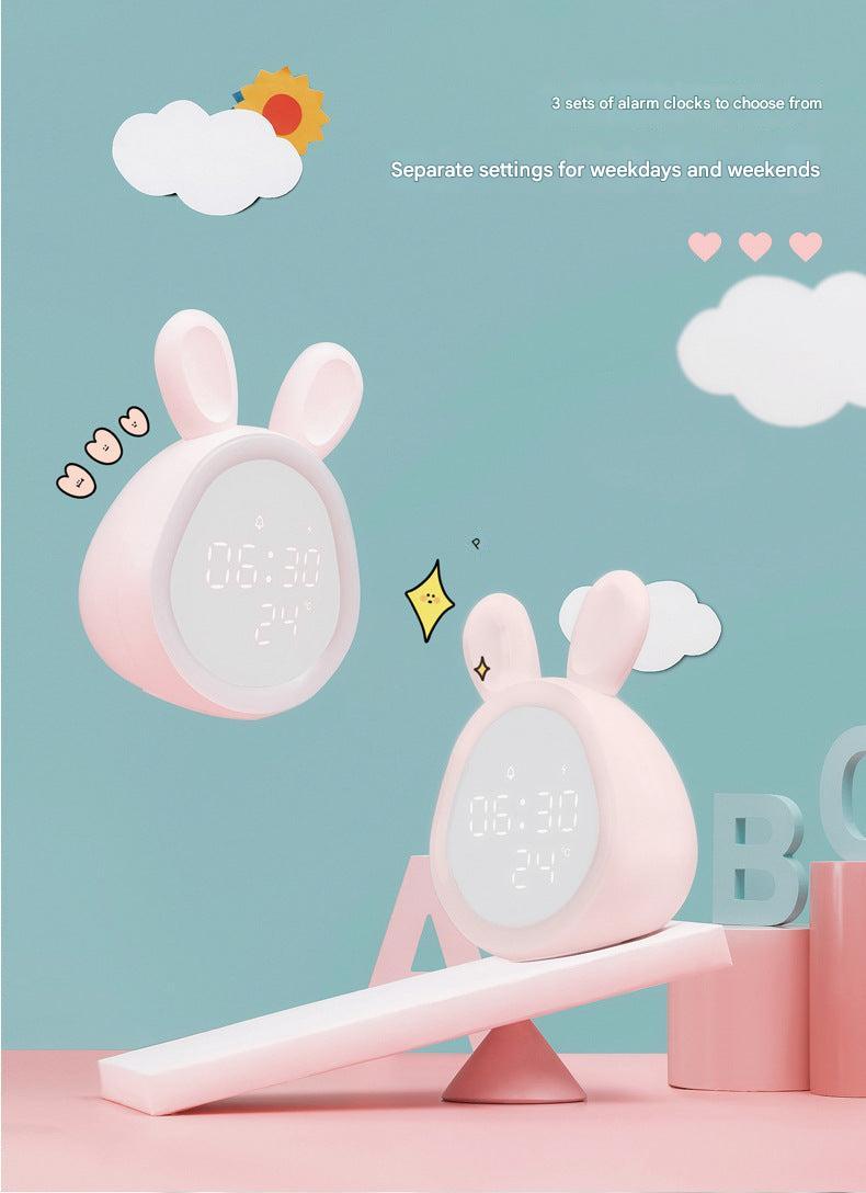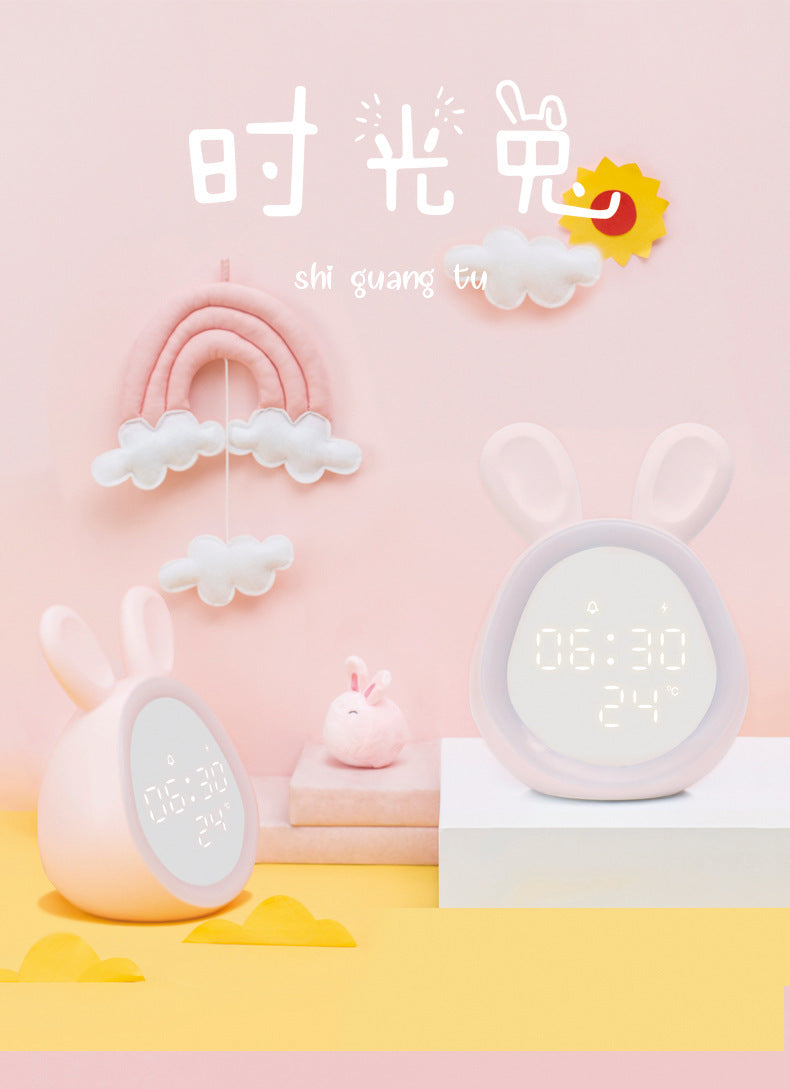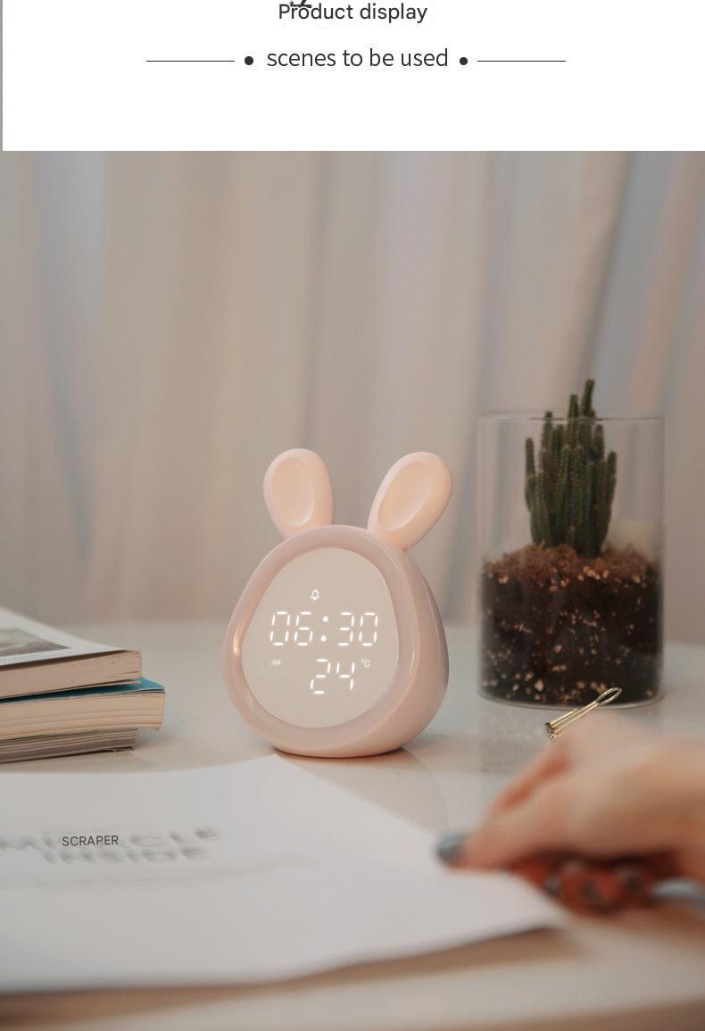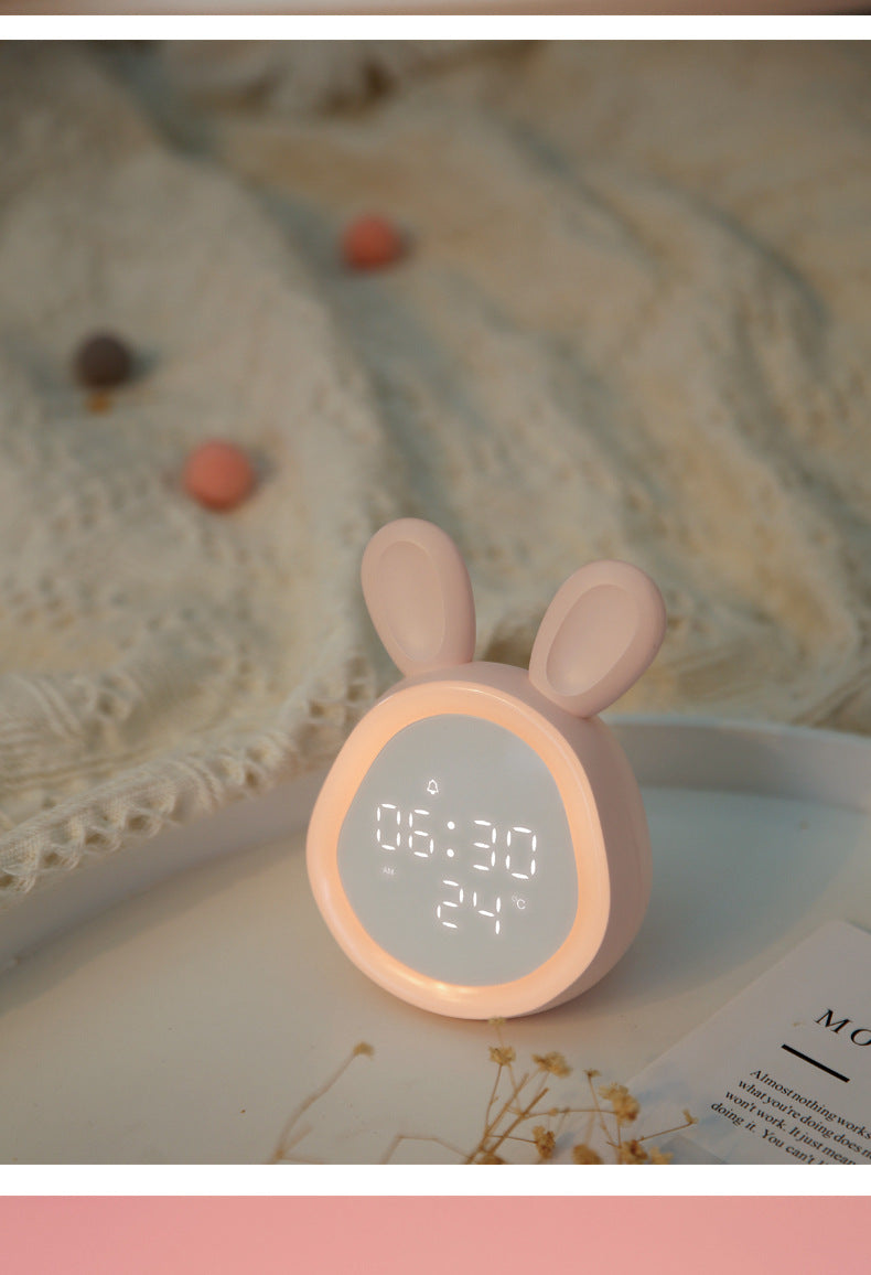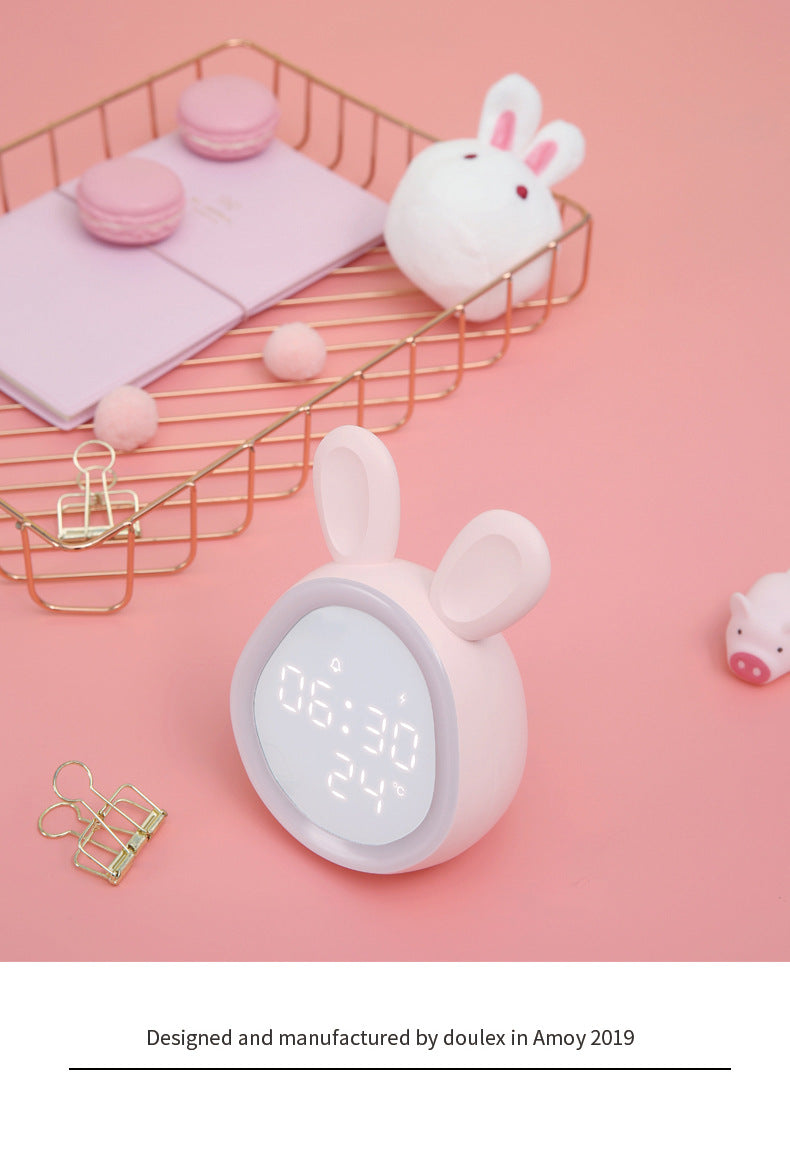 Cute Time Bunny LED Alarm Clock with Night Light, Rechargeable Digital Display for Kids and Students