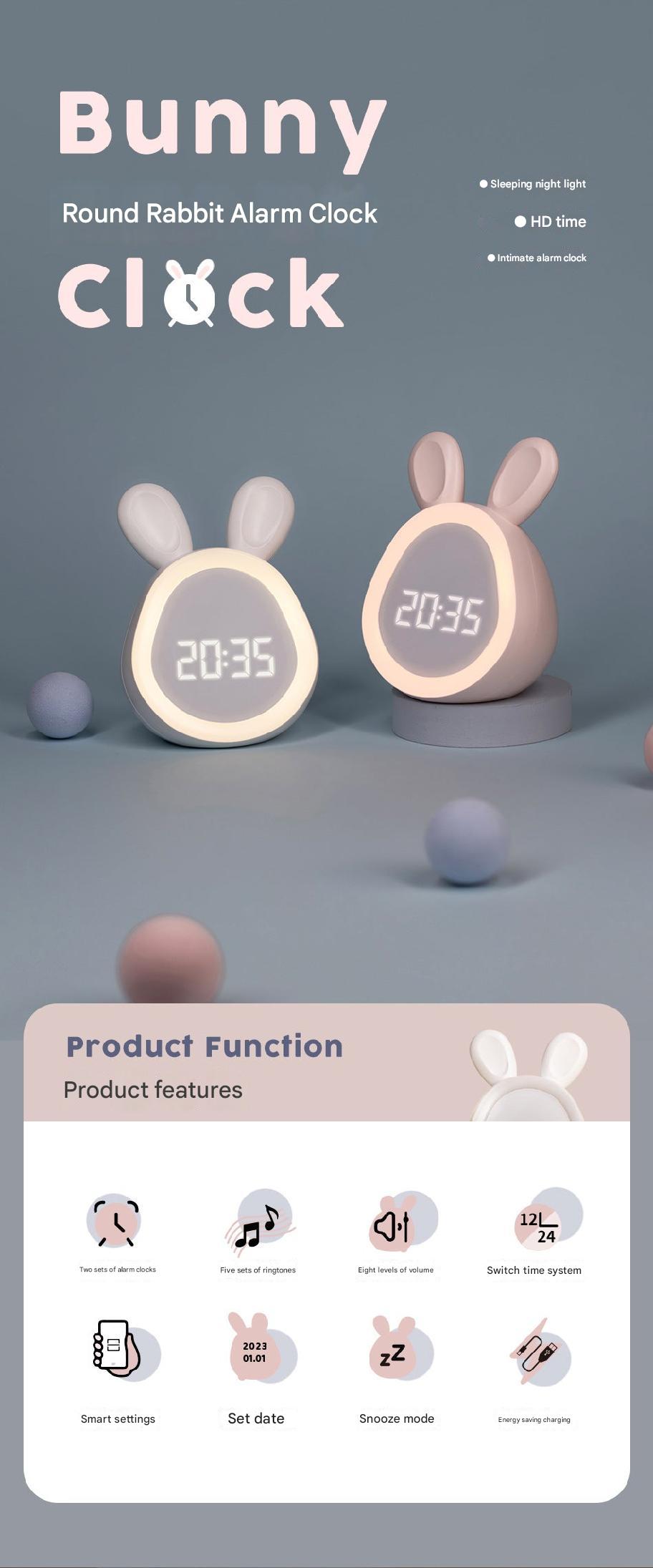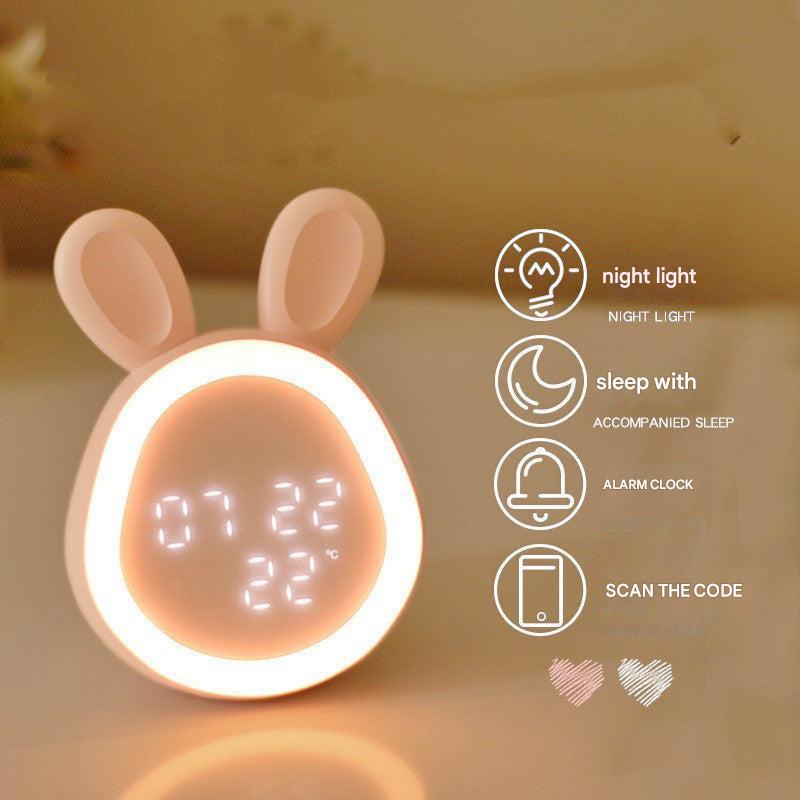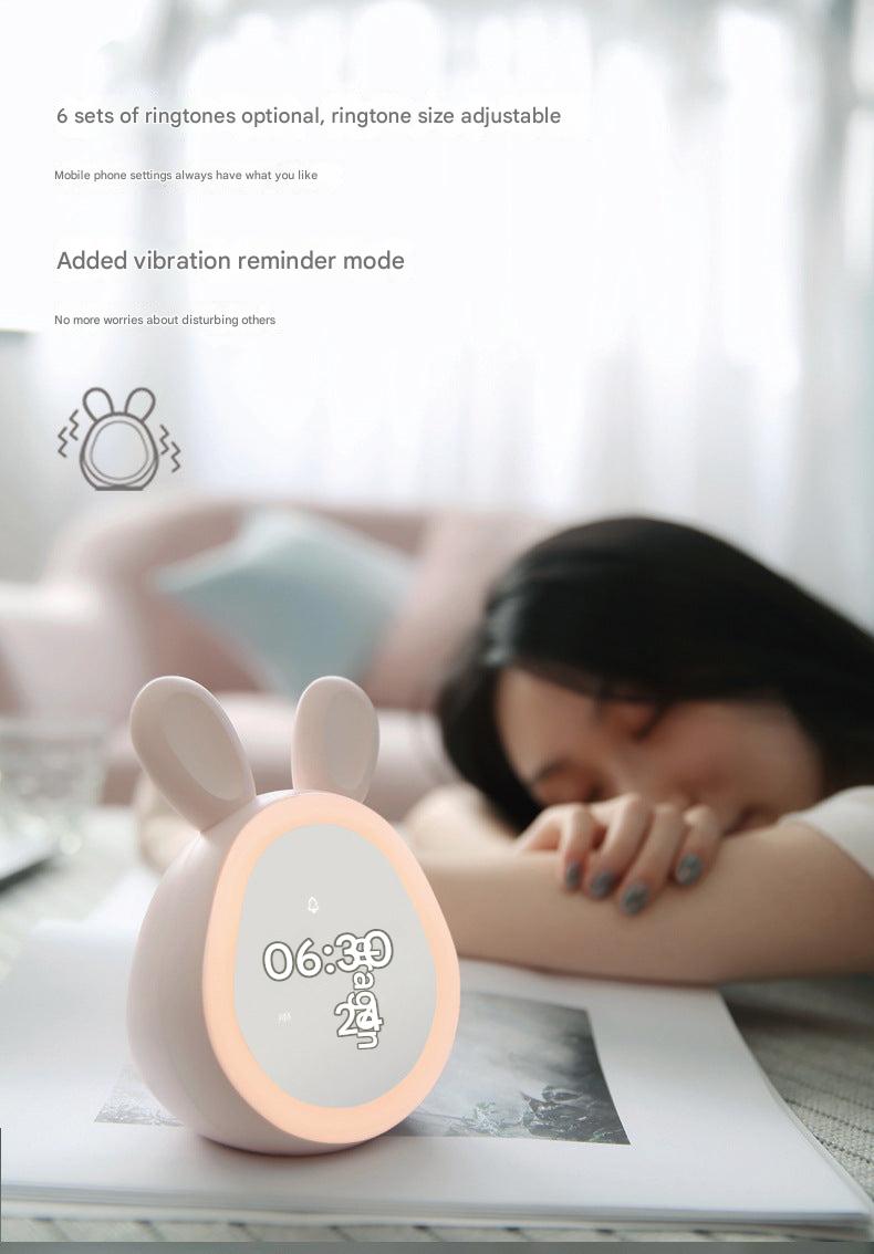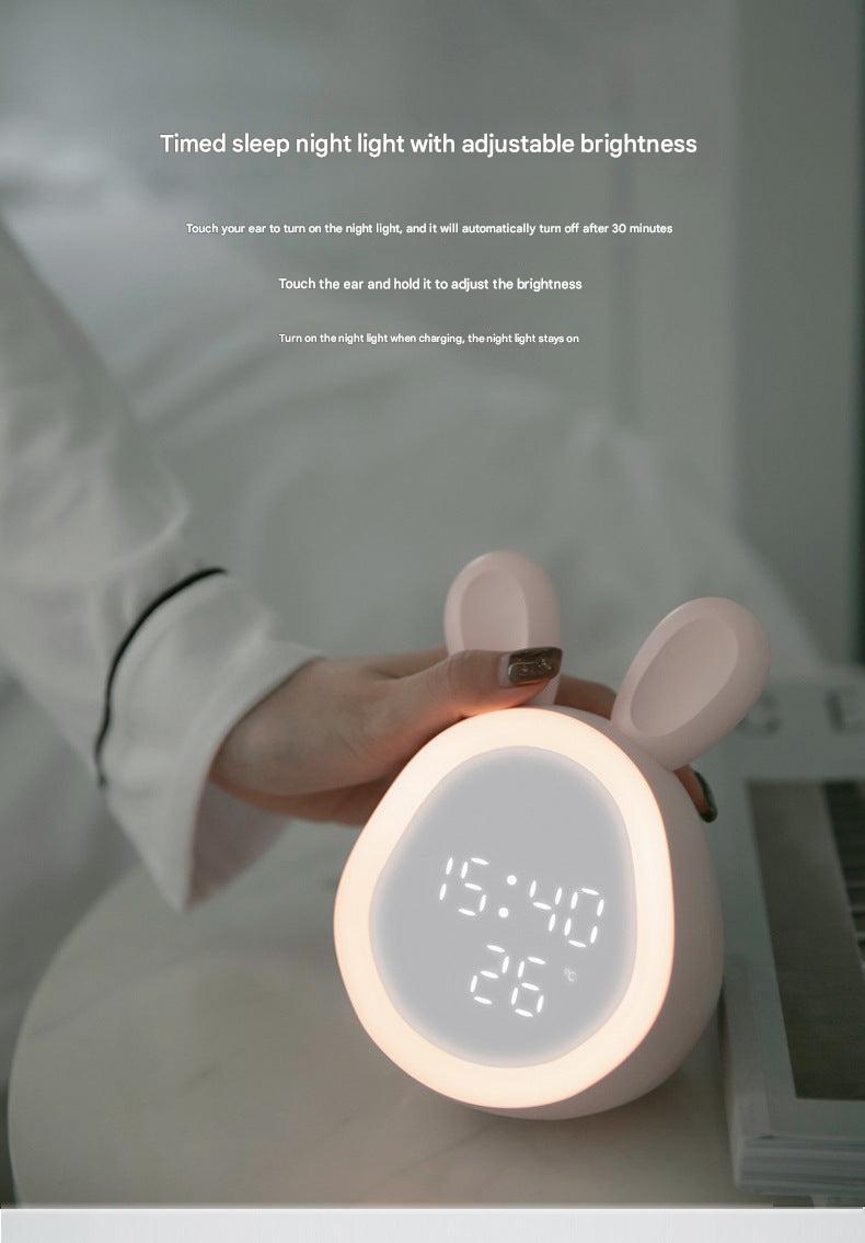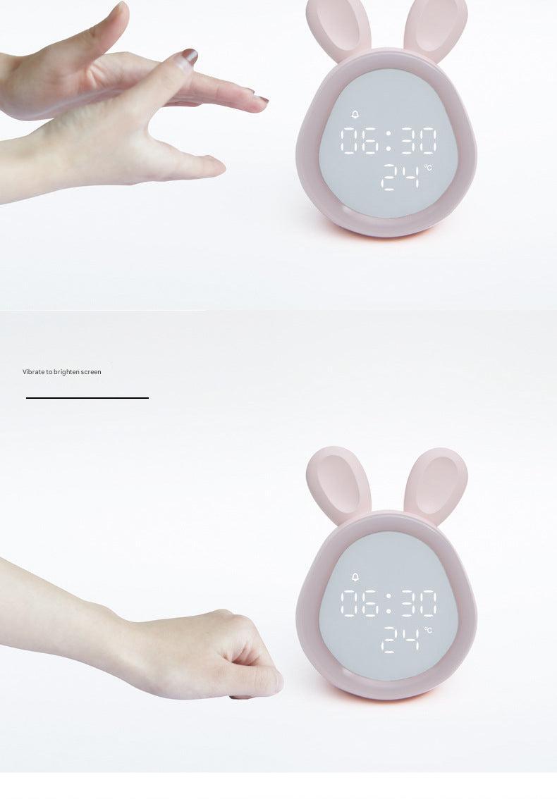 Cute Time Bunny LED Alarm Clock with Night Light, Rechargeable Digital Display for Kids and Students