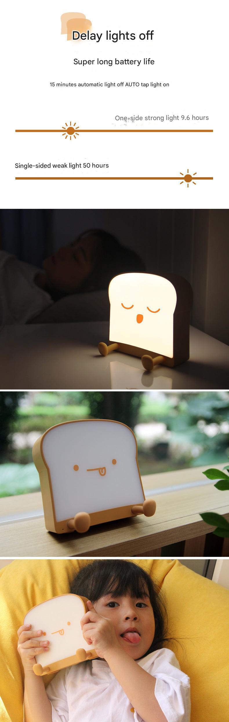 Cute Toast Bread Night Light – USB Rechargeable, Tap-Controlled LED with Timer Function for Kids and Adults