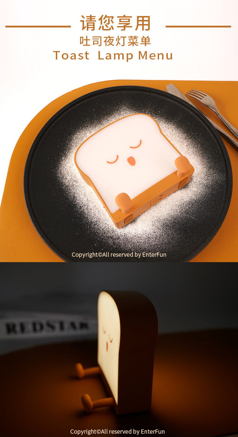 Bring a touch of joy and functionality into your space with our Cute Toast Bread Night Light. Designed to mimic the charming appearance of toast bread, this night light adds a unique style to any room, particularly appealing in children's bedrooms, nurseries, or playful adult decor. This USB rechargeable device ensures you never have to fuss with batteries - simply charge and enjoy hours of light. Its tap control feature allows for easy operation, including a timer function that shuts off automatically, providing peace of mind and conserving energy. The soft, warm glow it emits is perfect for creating a snuggly environment, making it an ideal gift for loved ones on any occasion.