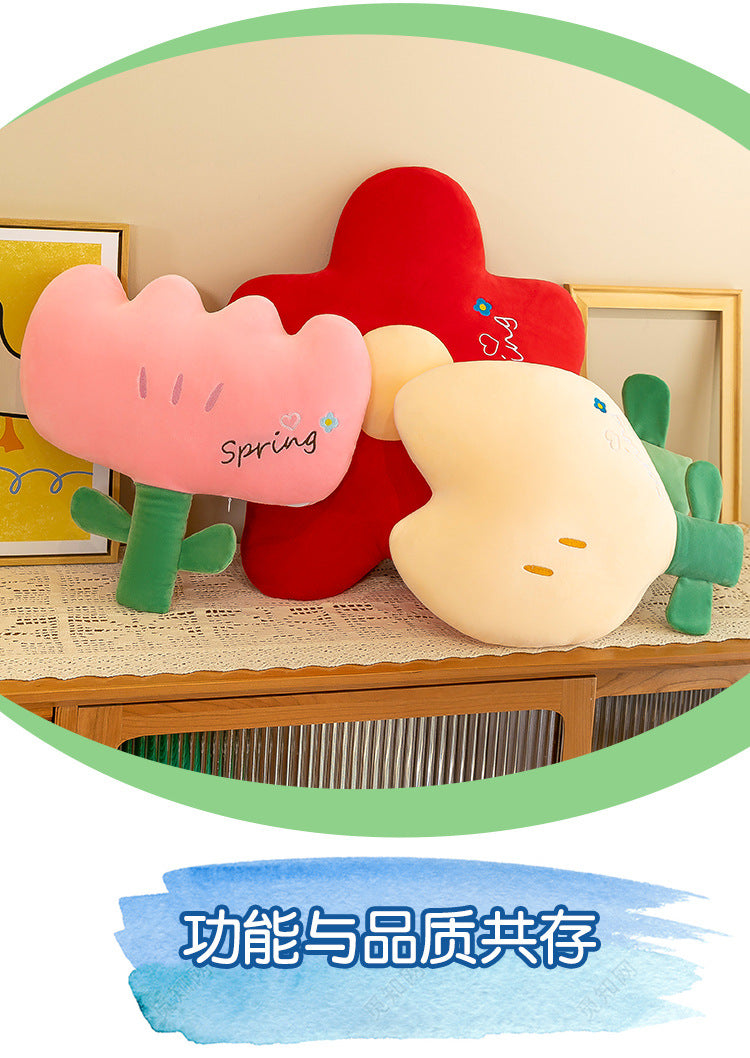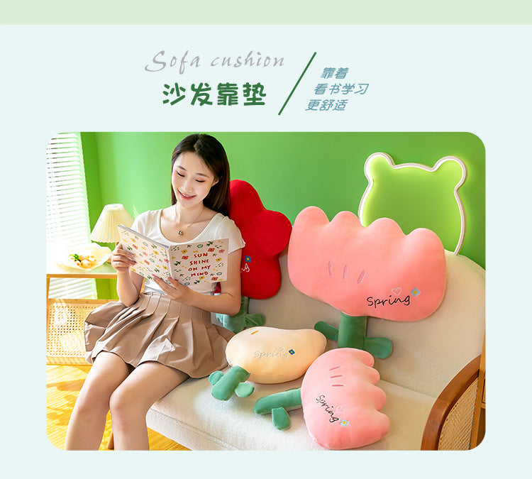 Introducing the charming Tulip Plush Pillow, the perfect addition to any girl's room or as a cozy companion on any sofa. This plush pillow combines aesthetic appeal with comforting softness, making it a wonderful gift for children and adults alike. With its bright colors and adorable shape, it brings a touch of whimsy and warmth to any space.