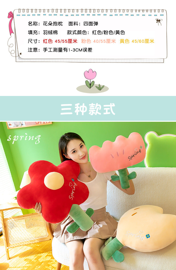 Cute Tulip Plush Pillow - Soft Fluffy Velvet Cushion Decorative Throw Sofa Pillow - Ideal for Girls and Gifts