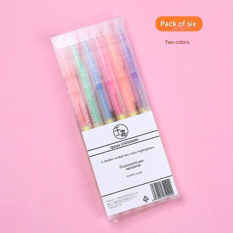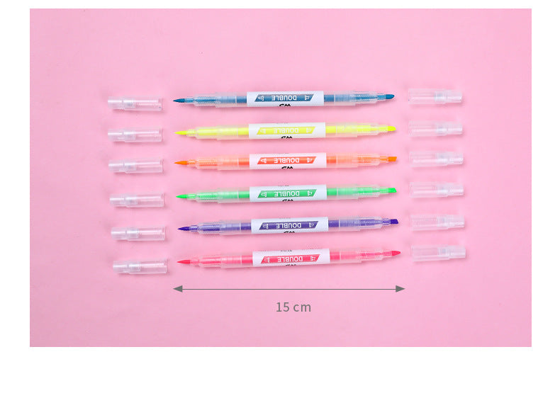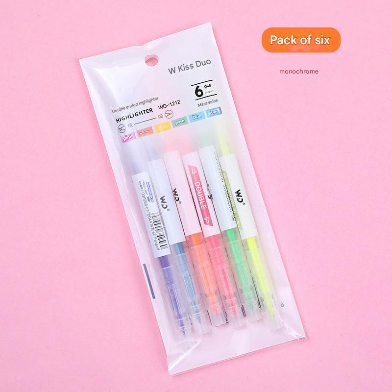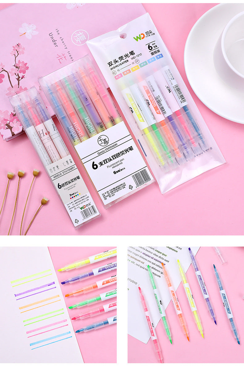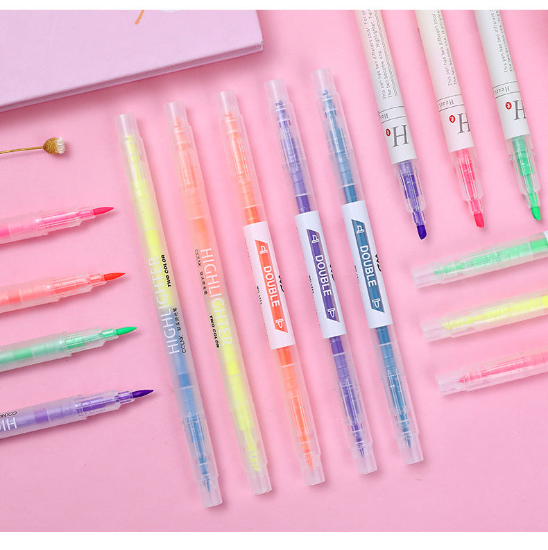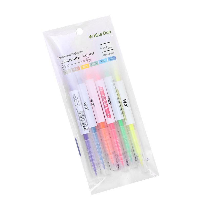Our set of 6 Dual-Tip Colorful Highlighter Pens is designed for students and professionals who desire both functionality and style in their stationery. Each pen features both a broad and fine tip, allowing for seamless transition between underlining and highlighting. With a vibrant palette of colors, these pens add a pop of color to your study materials or professional documents. The ink is specially formulated to prevent smearing, providing clean, crisp lines every time you highlight over other inks. Ergonomically shaped, these pens are a pleasure to hold and can reduce hand fatigue during prolonged writing or marking sessions. Packaged in a handy and durable bag, these highlighter pens are easy to store and transport, ensuring you have quality highlighters on hand wherever you go. Whether you're preparing for a big exam or annotating documents for a presentation, these pens are an excellent choice for making key information stand out.