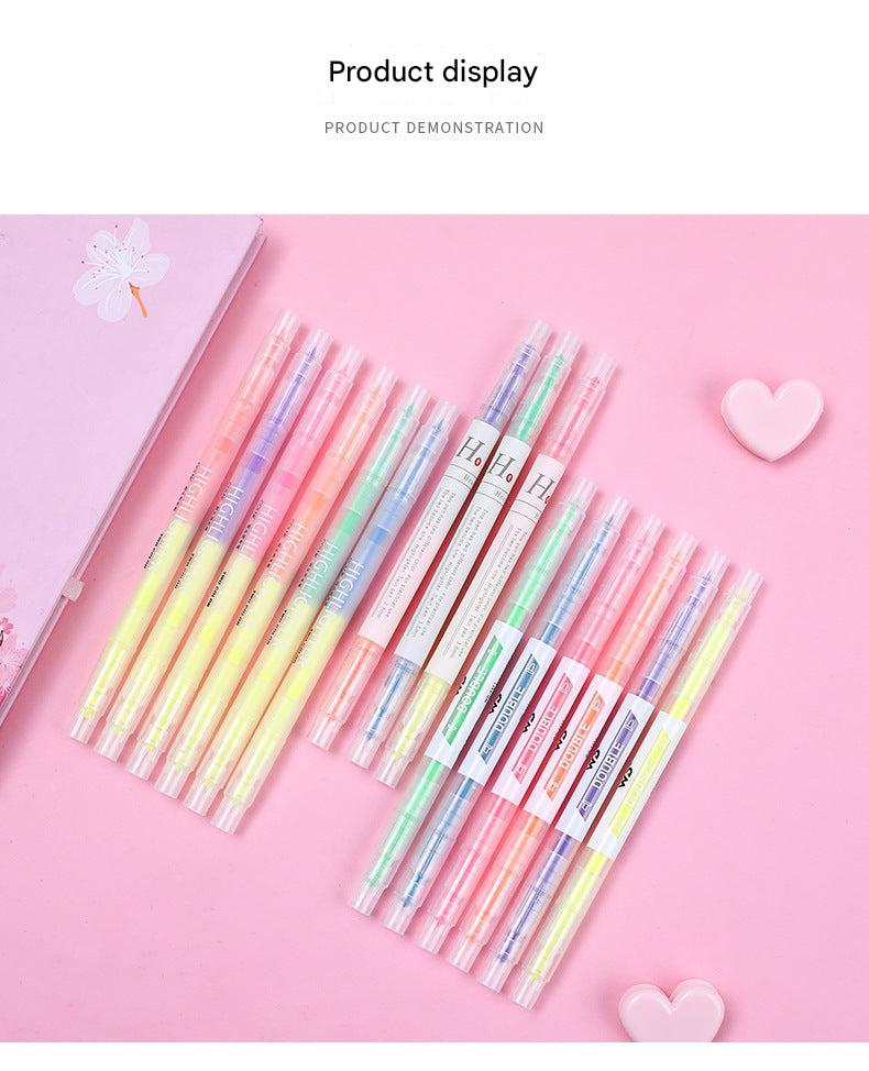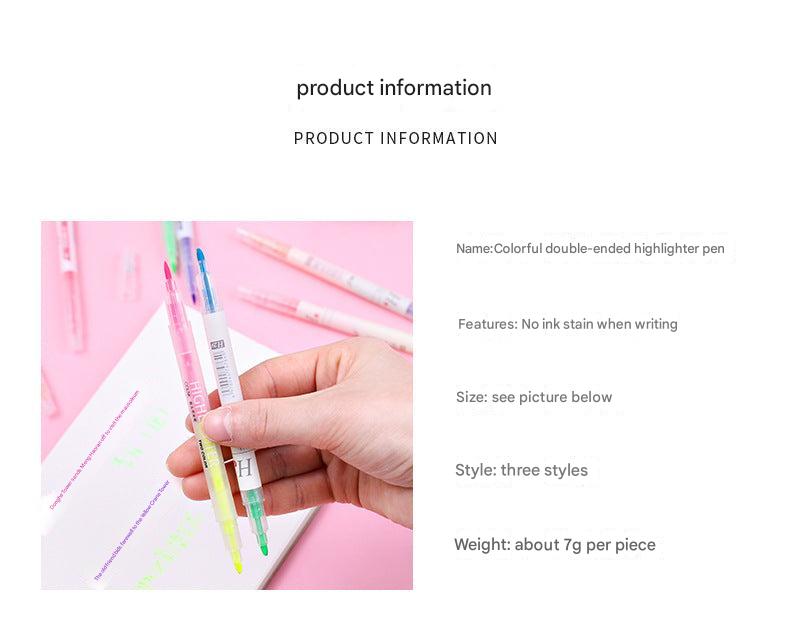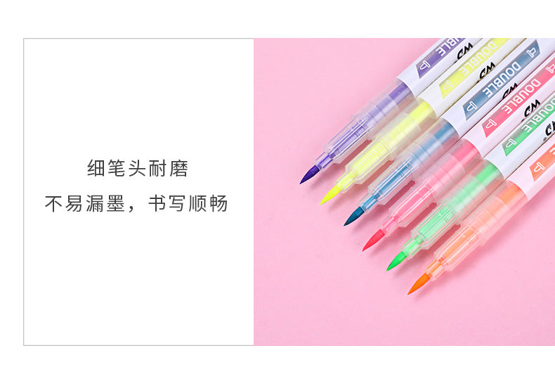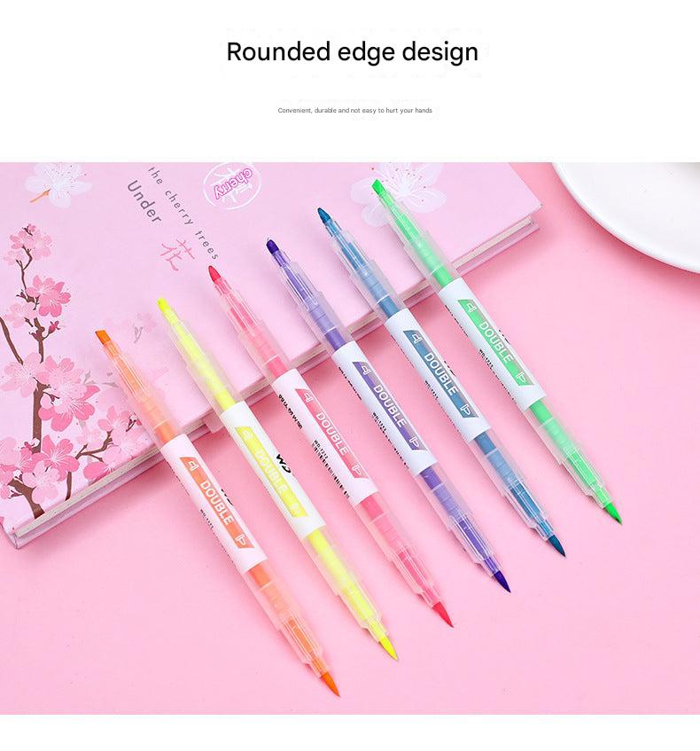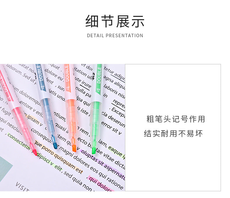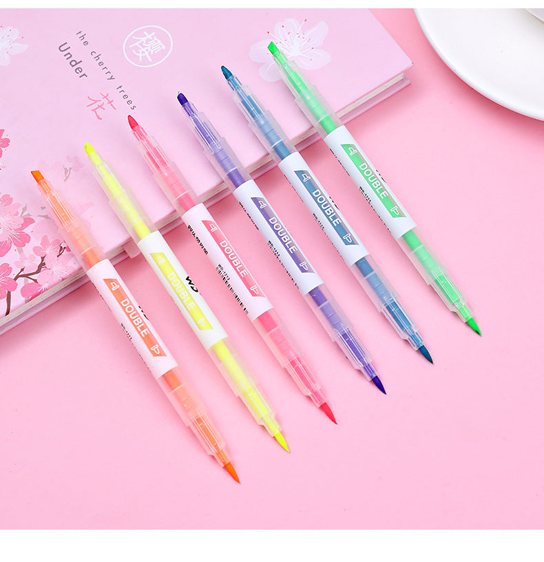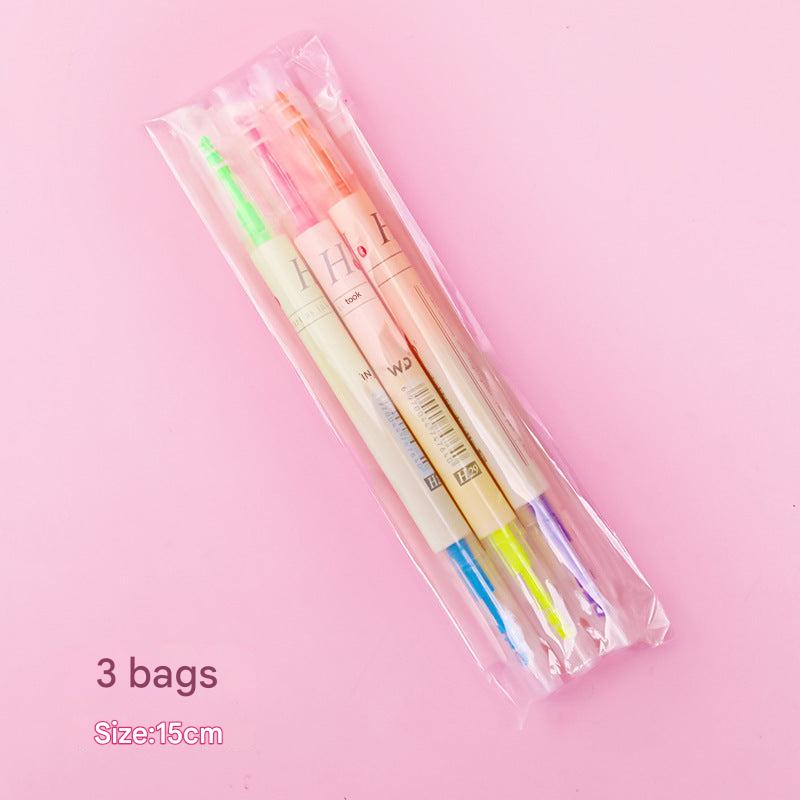 Our set of 6 Dual-Tip Colorful Highlighter Pens is designed for students and professionals who desire both functionality and style in their stationery. Each pen features both a broad and fine tip, allowing for seamless transition between underlining and highlighting. With a vibrant palette of colors, these pens add a pop of color to your study materials or professional documents. The ink is specially formulated to prevent smearing, providing clean, crisp lines every time you highlight over other inks. Ergonomically shaped, these pens are a pleasure to hold and can reduce hand fatigue during prolonged writing or marking sessions. Packaged in a handy and durable bag, these highlighter pens are easy to store and transport, ensuring you have quality highlighters on hand wherever you go. Whether you're preparing for a big exam or annotating documents for a presentation, these pens are an excellent choice for making key information stand out.