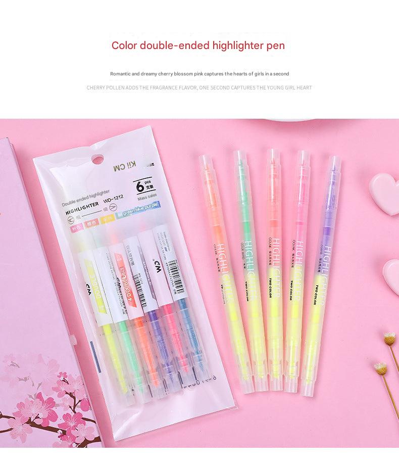 Dual-Tip Colorful Highlighter Pens, Set of 6 – Versatile & Bright Markers for Students and Professionals