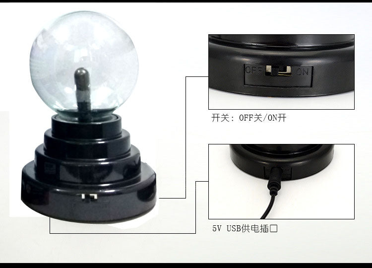 Electrostatic Plasma Lightning Ball Lamp - USB Powered 3-Inch Decorative Night Light for Ambient Lighting and Gifts