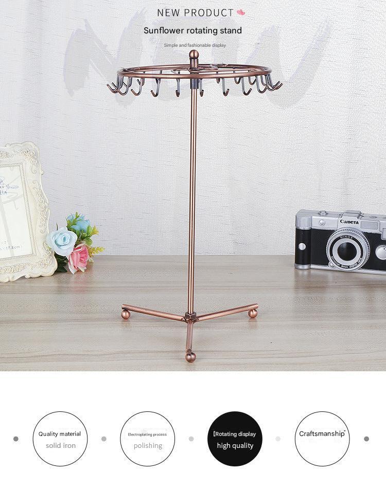 Elegant Metal Jewelry Organizer Stand - Rotatable Multi-Hook Necklace Display Rack, Storage for Earrings and Accessories