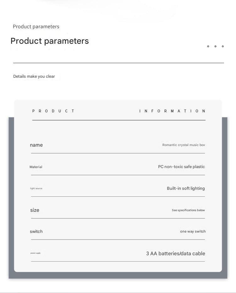• Crystal Clear Music: Equipped with an eight-note music mechanism that plays soothing, melodic tunes to enhance relaxation and ambiance.