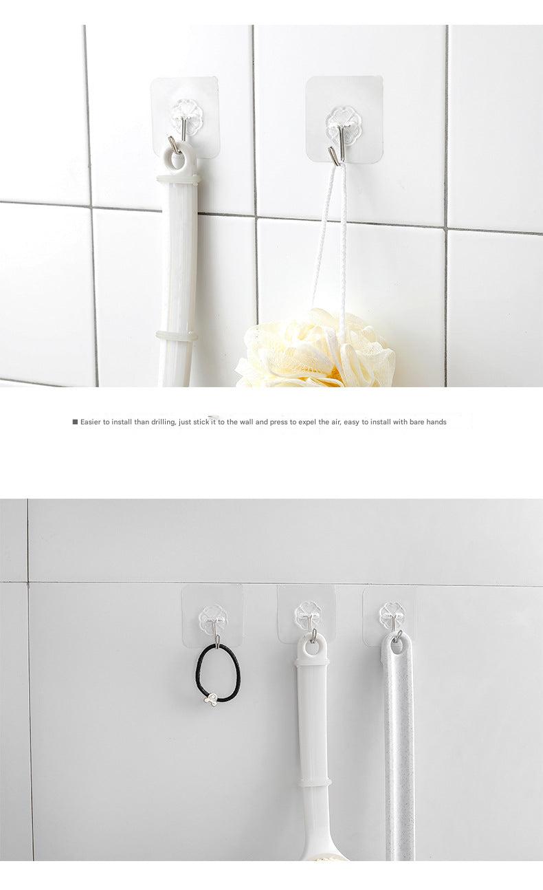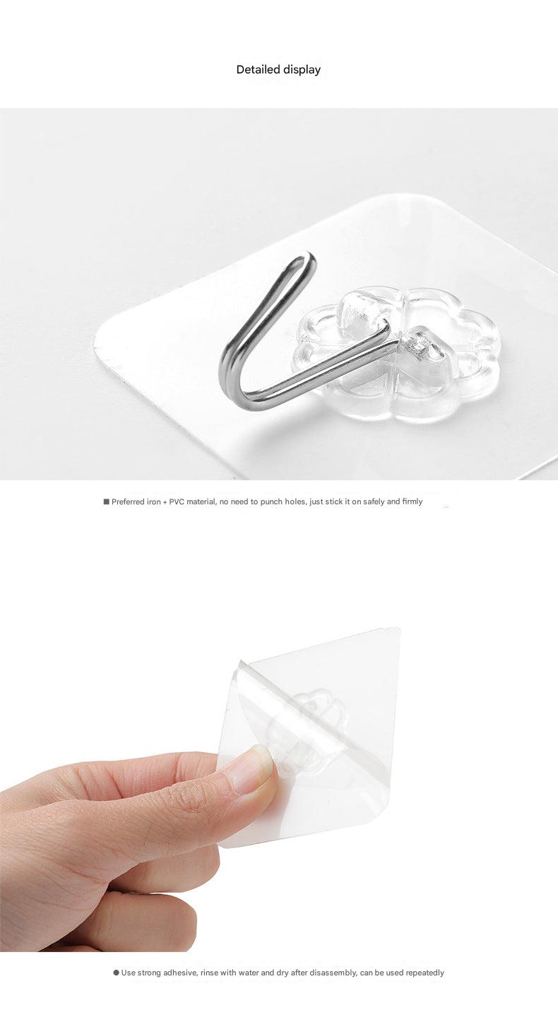 Heavy-Duty Transparent Wall Hooks - No-Drill, Strong Adhesive Hook Set