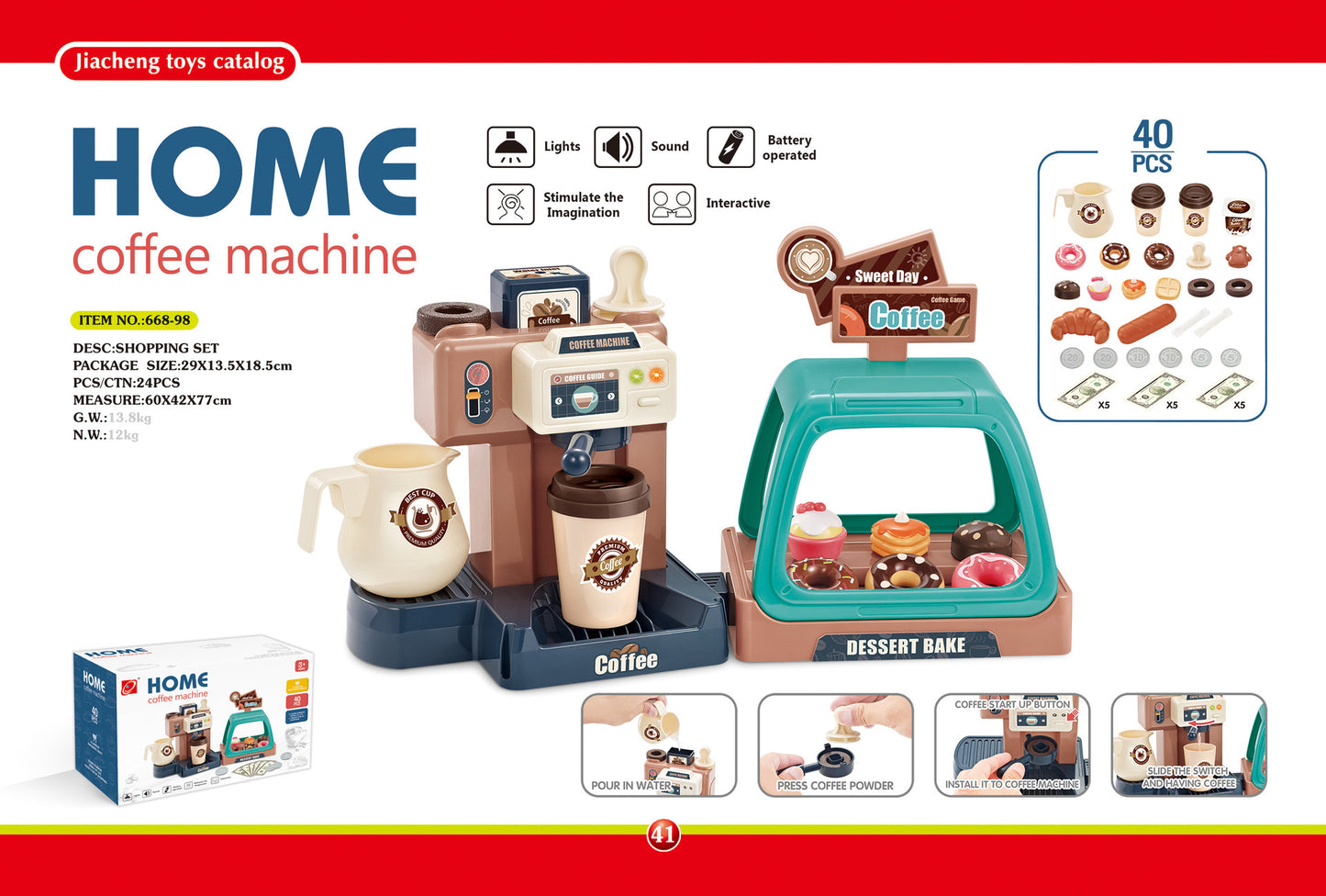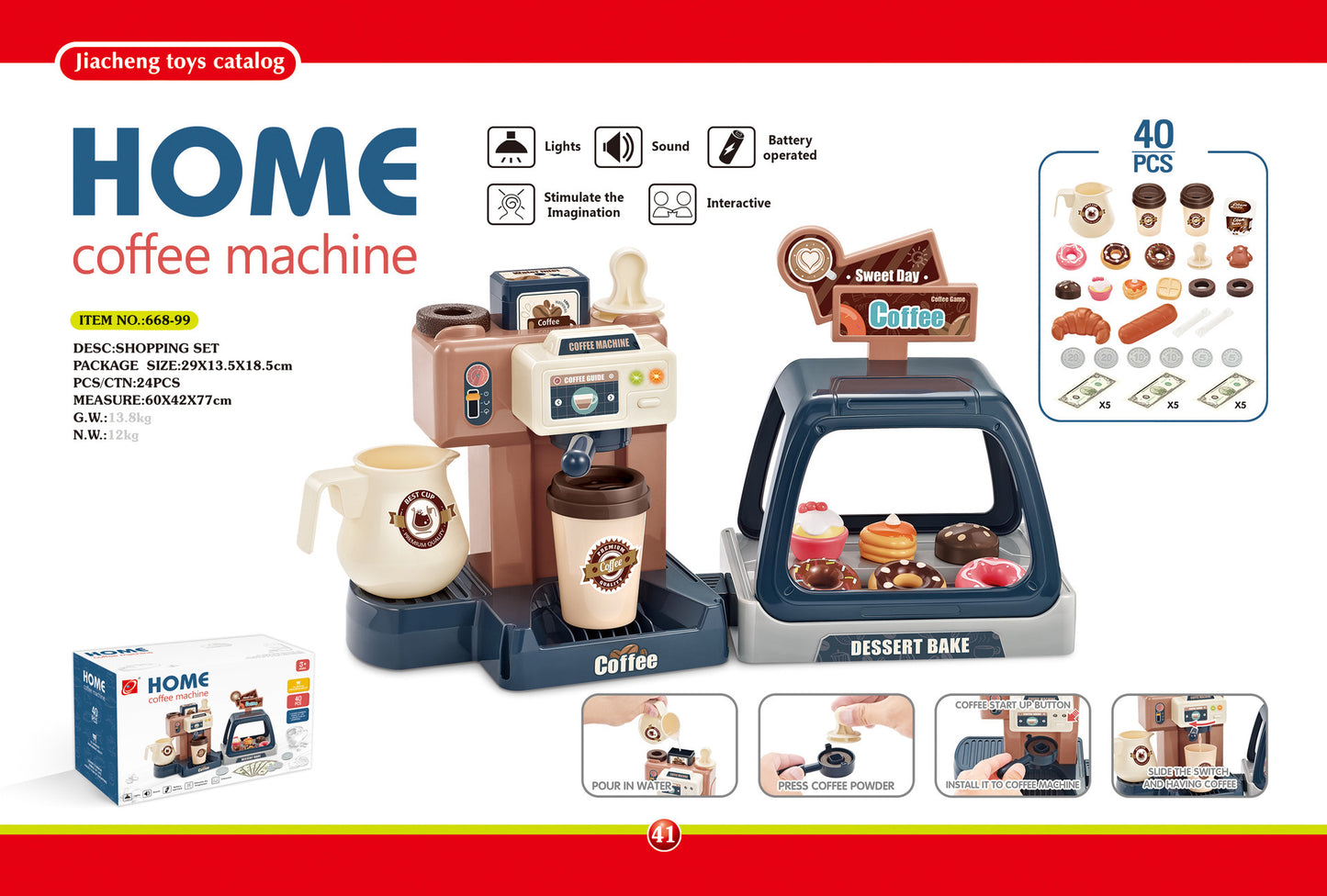 • Features water dispensing function in the coffee machine toy, adding to the interactive fun.