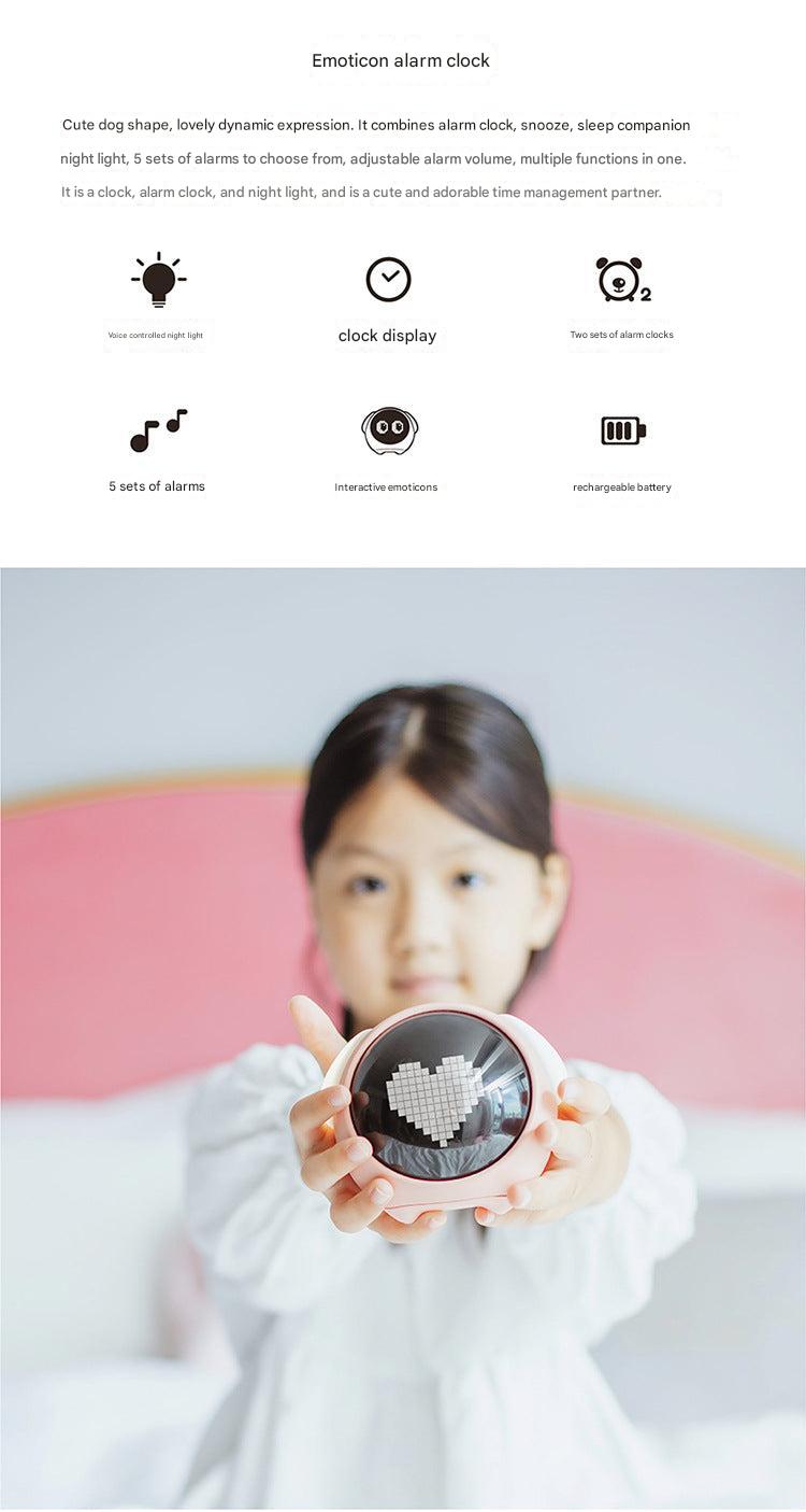 Kids LED Expression Pixel Alarm Clock with Smart Night Light & Digital Display for Students