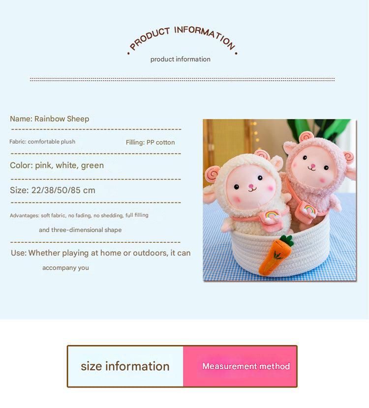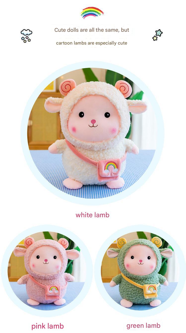 Introducing the Rainbow Sheep Plush Toy, a beautifully crafted stuffed animal that brings a burst of color and comfort into any setting. Made with premium curly plush material, this toy offers a delightfully soft feel, making it a perfect sleeping companion. Available in appealing pink, white, and green colors, and various sizes, it's designed to cater to everyone from young children to adults. The hypoallergenic PP cotton filling ensures it's safe for all ages, adding plushness that invites cuddles and hugs. The Rainbow Sheep makes an excellent gift for special occasions or a cute addition to personal collections.