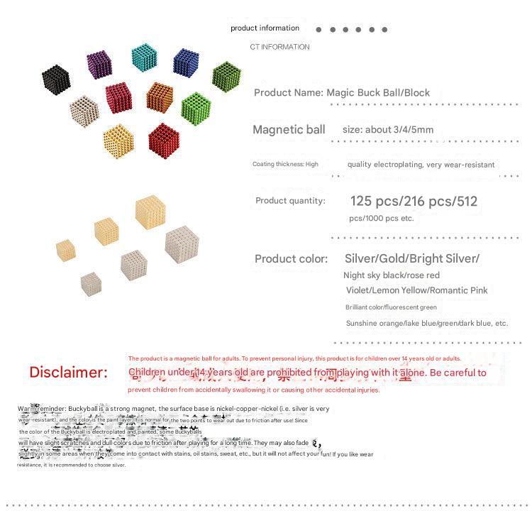 Discover the endless possibilities with our Magnetic Puzzle Balls! Perfect for stress relief and cognitive enhancement, these multicolor 5mm magnetic balls can be shaped, molded, torn apart, and snapped together to create intricate sculptures, complex designs, and playful structures. Each set includes 216 high-quality magnetic balls that are ideal for both adults and kids.