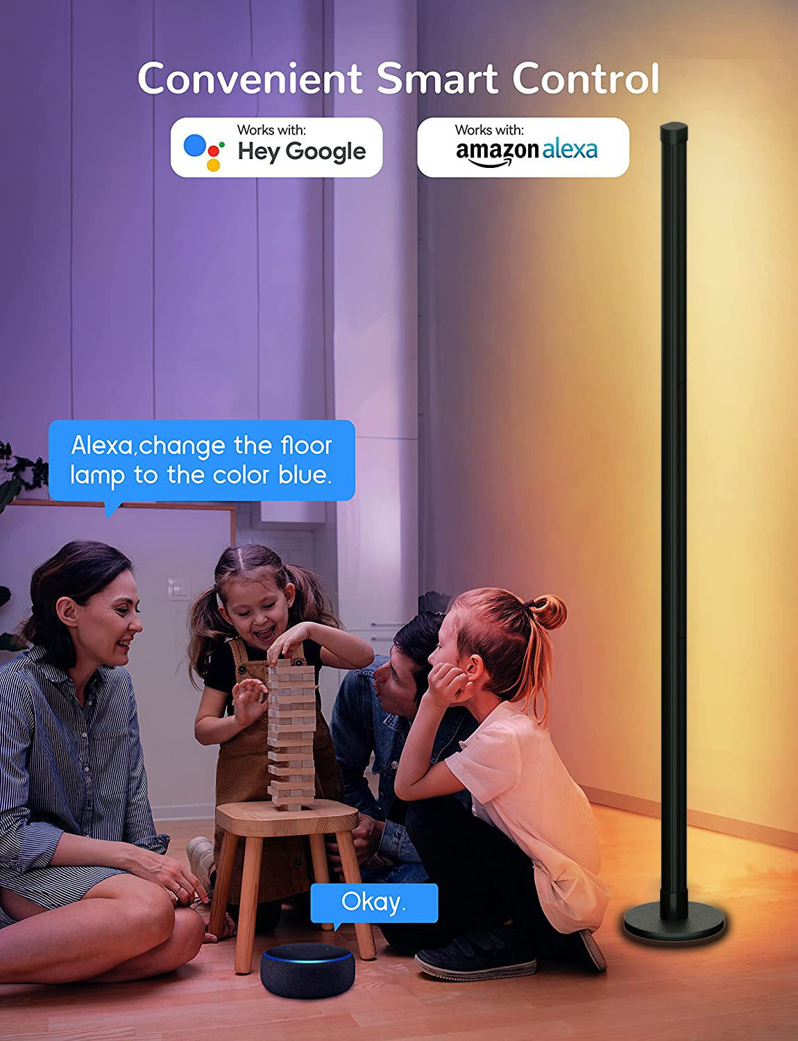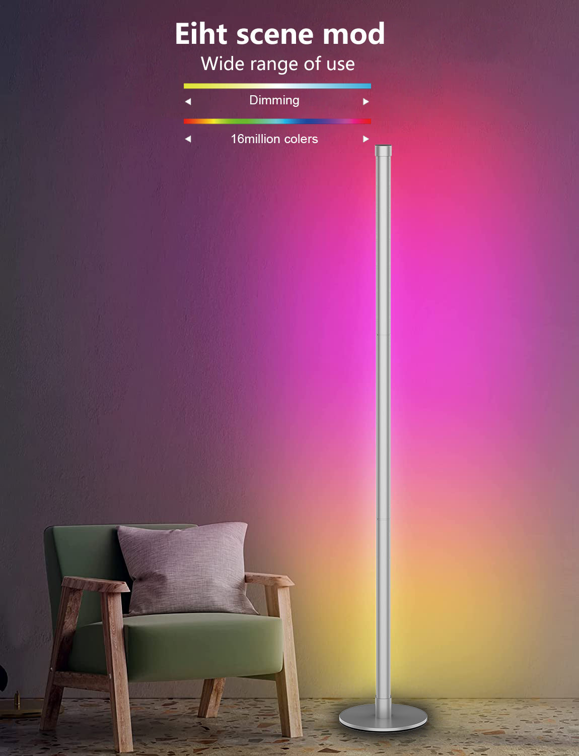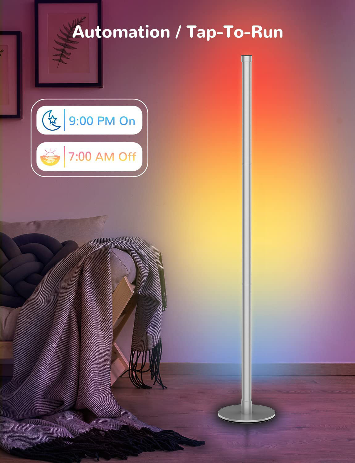 Bluetooth controlled RGB floor lamp in room