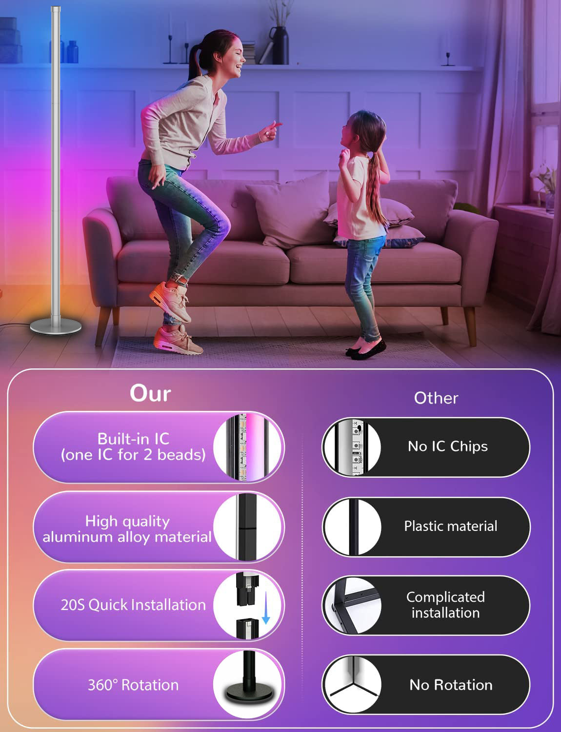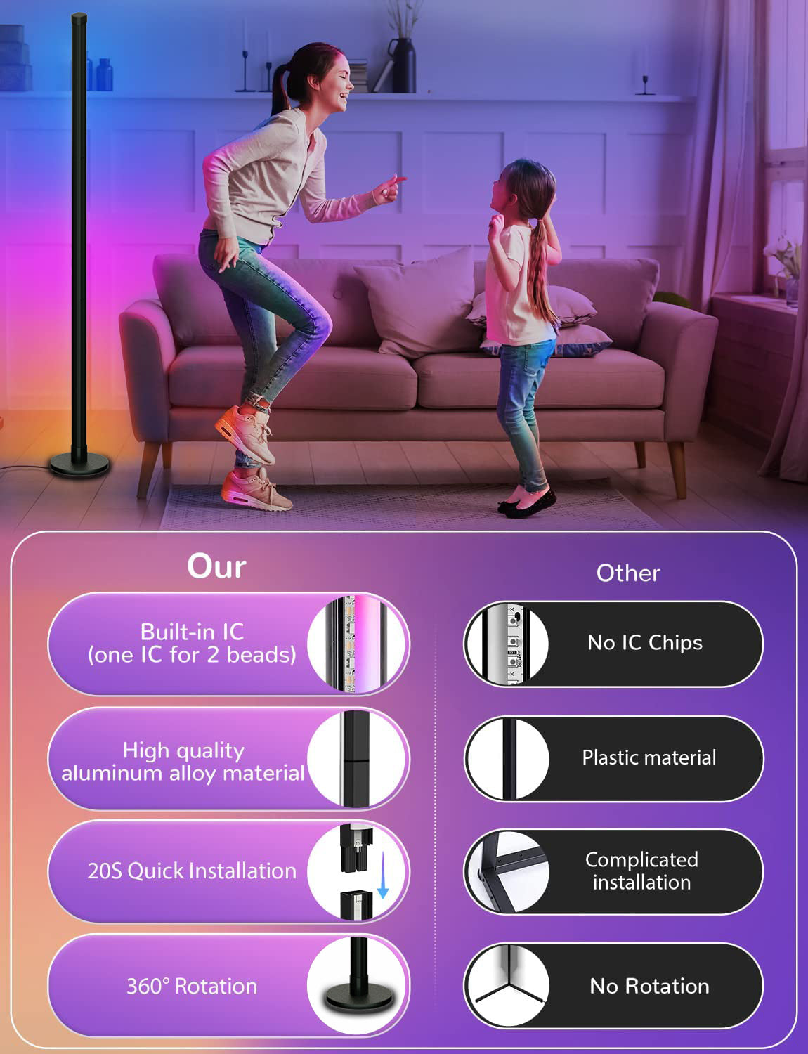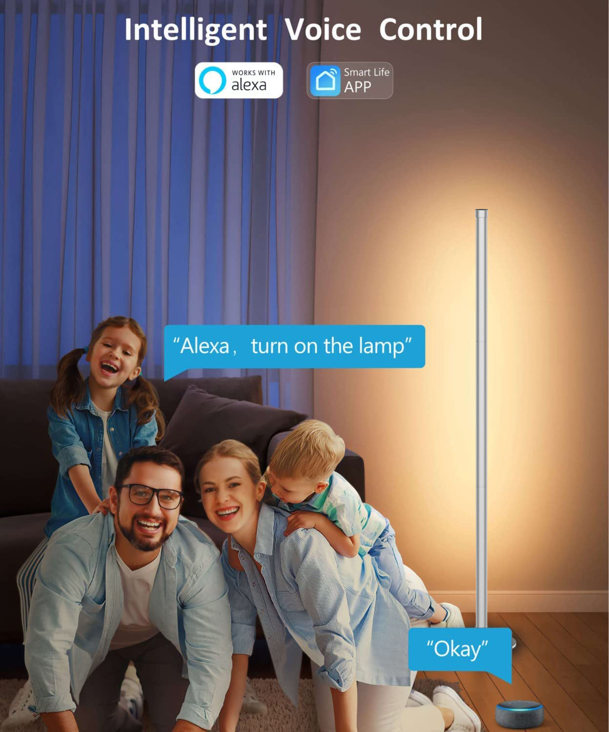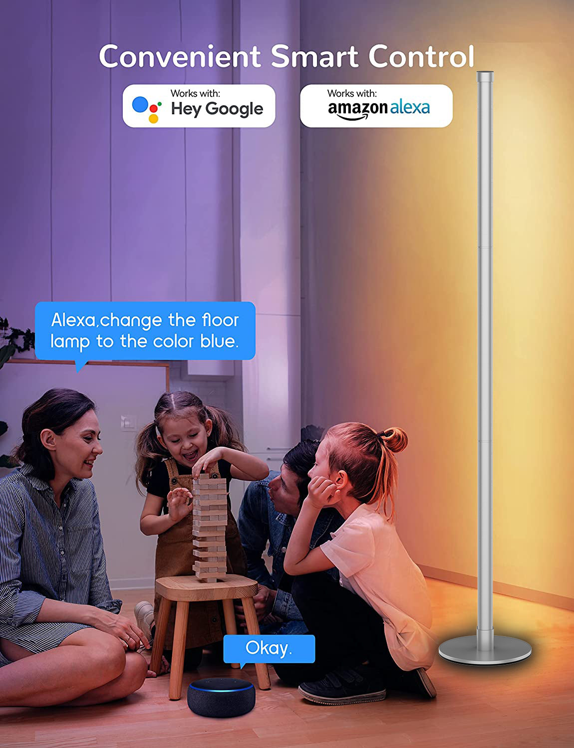 Bluetooth controlled RGB floor lamp in room