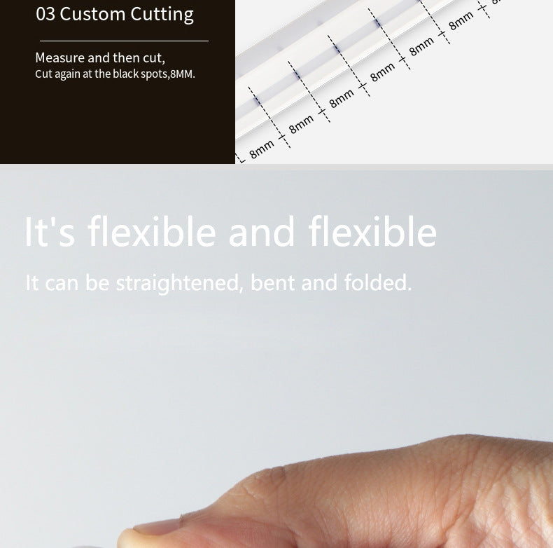 • Flexible Design: Easily contours around corners, perfect for custom closet setups or under-bed lighting.