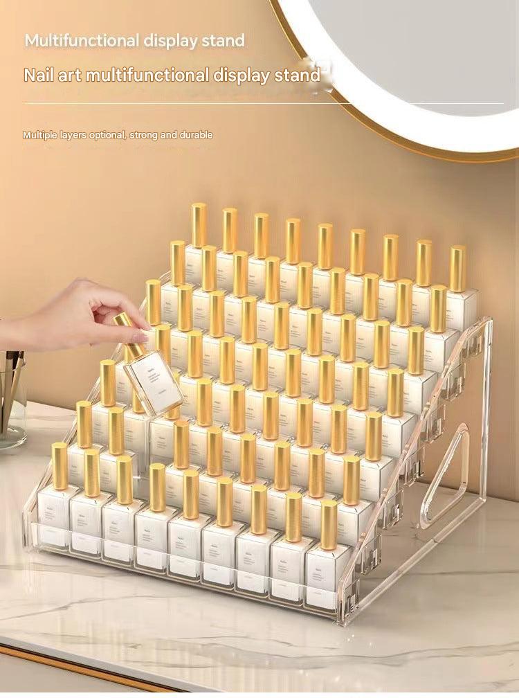 Multi-Layer Transparent Nail Polish Organizer - Acrylic Cosmetic Display Stand for Home Use