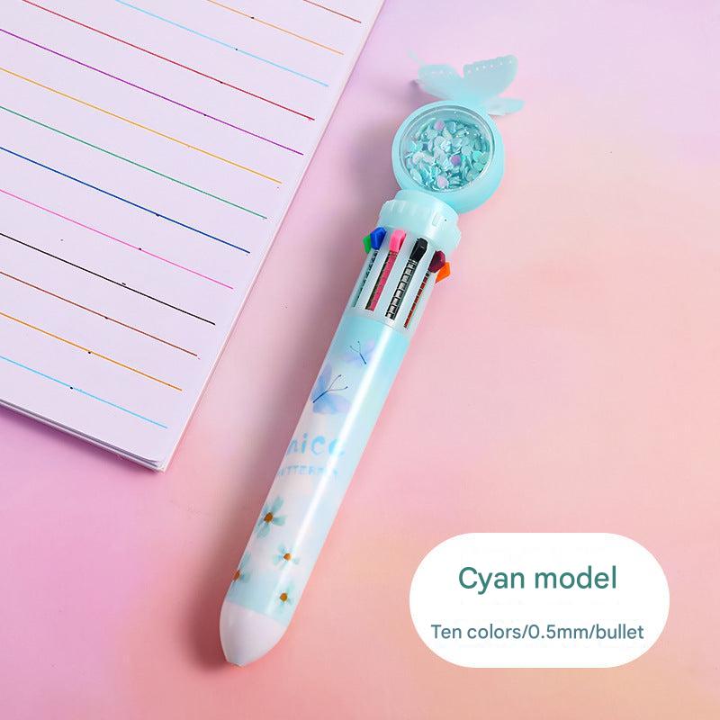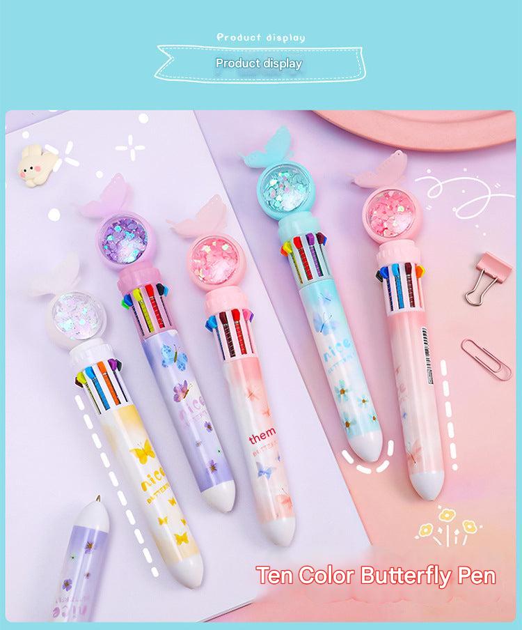Multicolor Butterfly Ballpoint Pen for Students - Lightweight, 10-in-1 Color Options, 0.5mm Fine Point