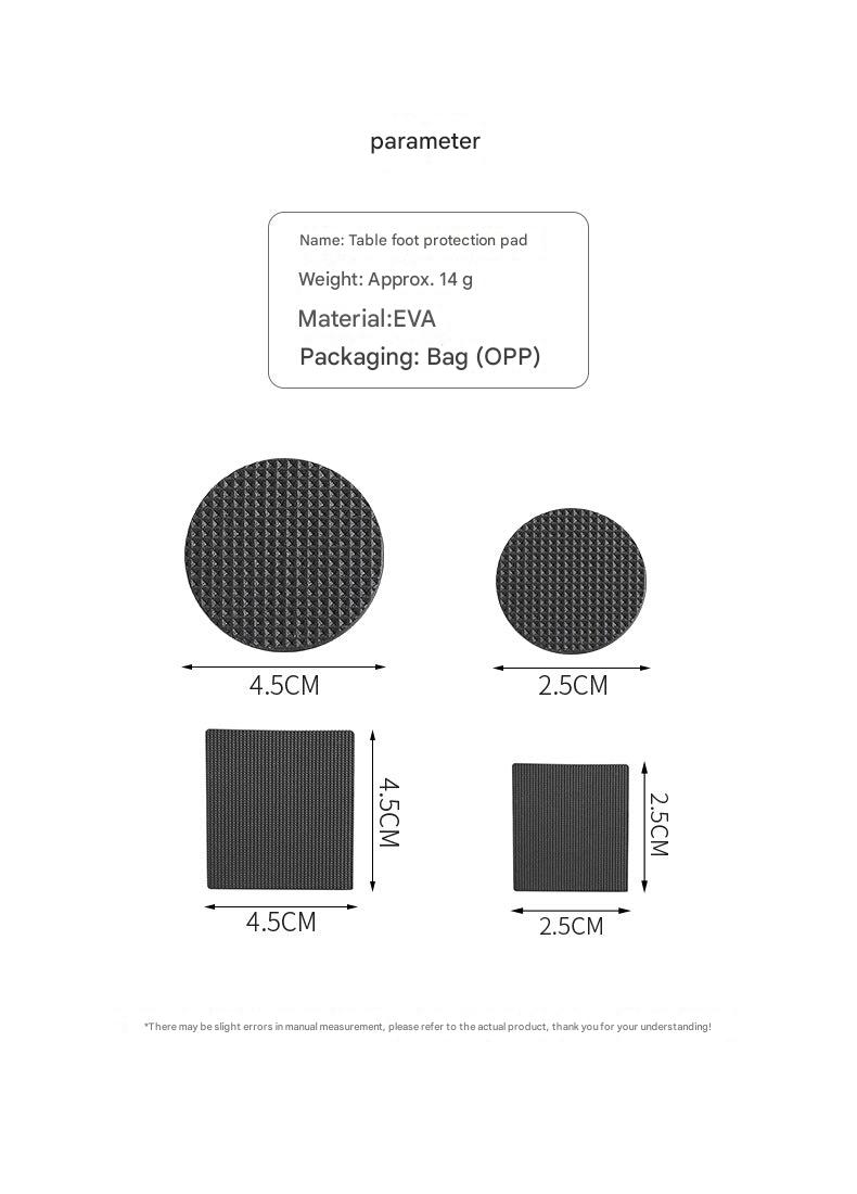 Elevate the protection and stability of your furniture with our EVA Furniture Pads. These pads are designed to shield your floors from scratches and minimize noise caused by moving furniture, making them ideal for homes with hardwood, tile, or laminate flooring. Made from durable EVA, these pads provide a cushioning layer that prevents damage and enhances furniture stability. Available in various shapes and sizes, these pads are versatile for any furniture leg and simple to install, ensuring long-lasting protection and improved aesthetic appeal in your home.