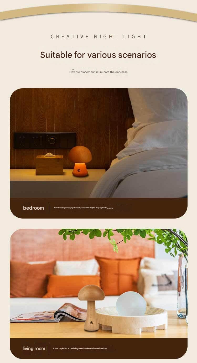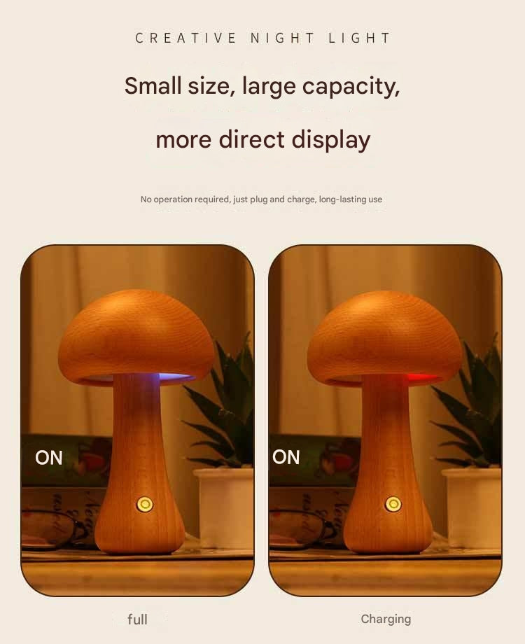 Designed with a creative, mushroom-shaped aesthetic, this night light serves not only as practical lighting but also as a charming home accessory. Its durable build ensures longevity, making it an essential addition to your home decor. The compact design makes it suitable for any tabletop, adding a touch of whimsy to your home's atmosphere.