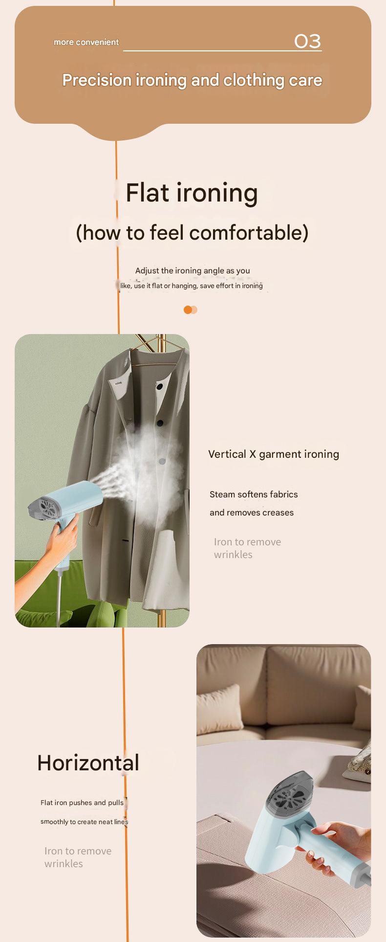 This portable steam iron is designed for effective and efficient garment care. With a powerful steam capability and a high capacity of 1.3 liters, it allows you to easily smooth out wrinkles and freshen up your clothes at home or while traveling. It features six adjustable temperature settings, making it suitable for various fabric types. Simply fill the water tank, choose the desired temperature, and within minutes, you're ready to tackle stubborn wrinkles. The rotating nozzle makes it even easier to reach every corner, ensuring a crisp appearance every time. Our customers love how this product not only saves them time but also ensures their clothing looks pristine.