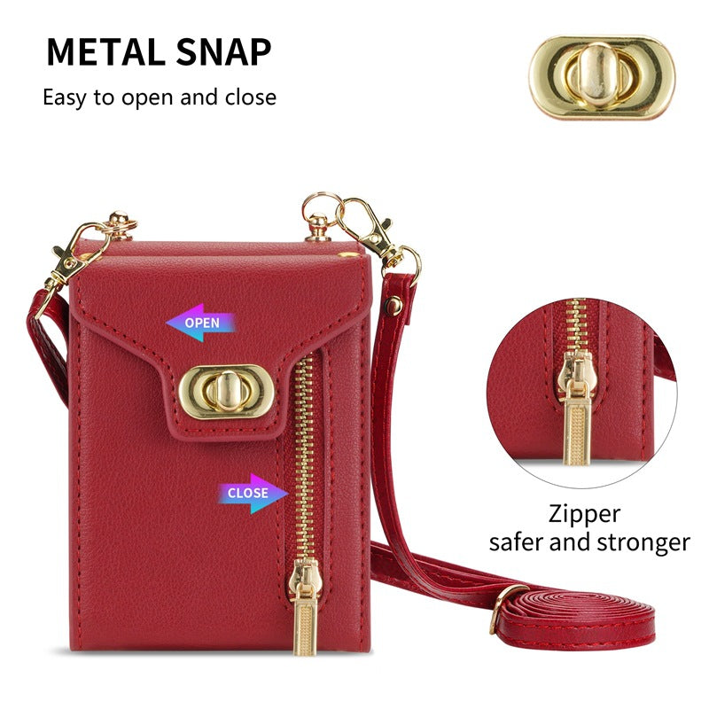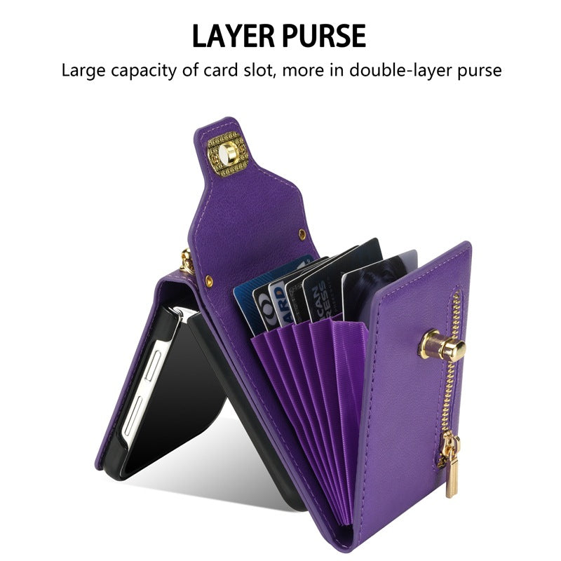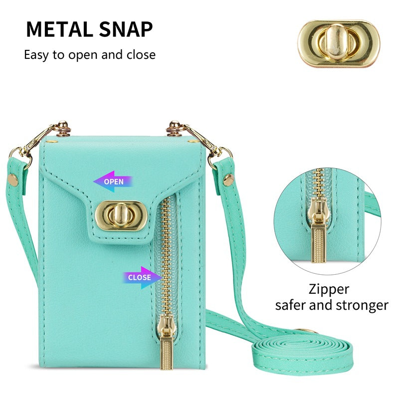 This wallet case features multiple card slots, enabling you to conveniently store your essential cards and cash. The secure zipper closure provides added security, making it perfect for everyday use or travel. With colors available in classic black, stunning rose gold, vibrant green, bold red, and rich purple, you can choose the perfect style that suits your personality.