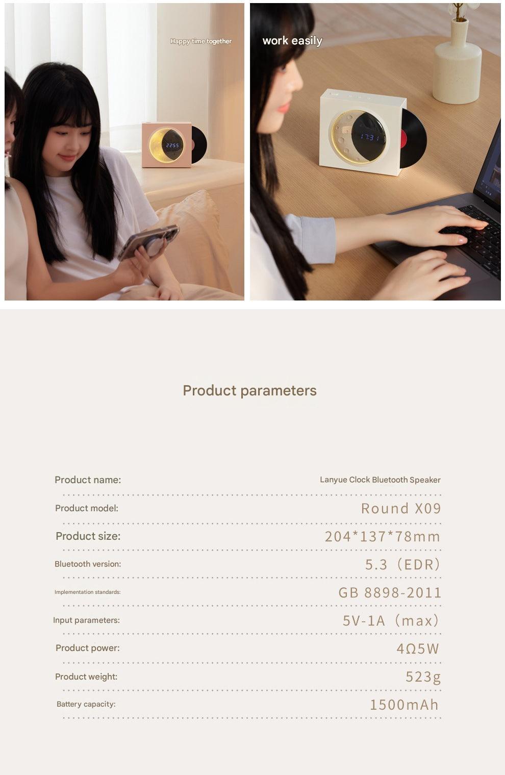 Retro Bluetooth Vinyl Record Player with USB Charging, Moon Clock & Star Projector