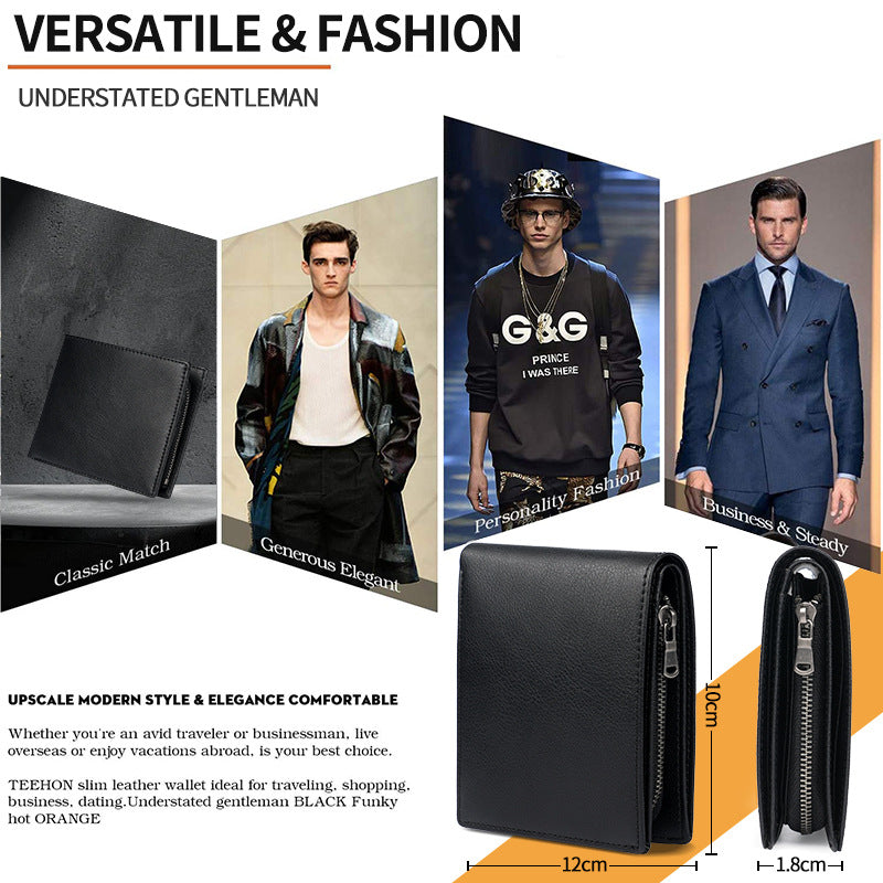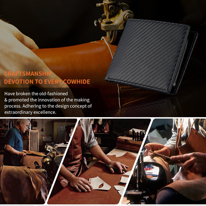 Introducing our RFID Blocking Wallet for Men, designed to combine style and security. This wallet features a double fold design with ample room for your credit cards and a dedicated coin pocket, ensuring that everything is organized and easy to access. Made from high-quality synthetic leather, it's not only durable but also sleek, coming in modern colors such as black, brown, and carbon fiber. Whether you're heading to work or traveling, this wallet provides reliable protection against unauthorized RFID scans, making it essential for peace of mind. Ideal for everyday use, this wallet meets the functional needs of busy lifestyles while also looking stylish.