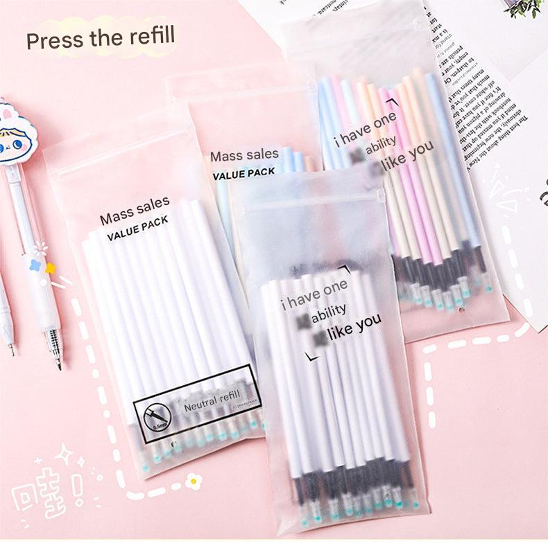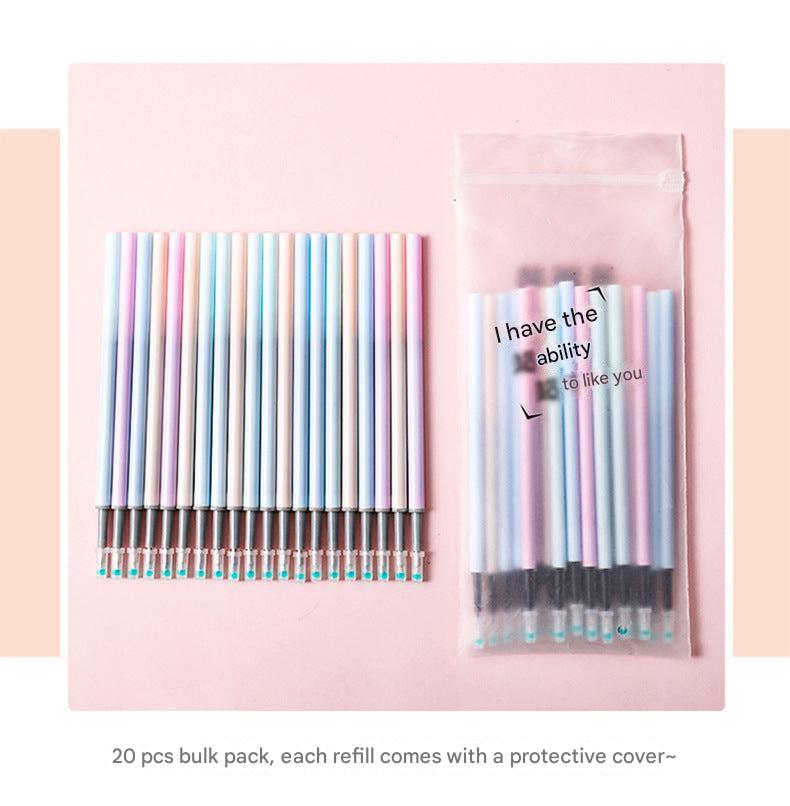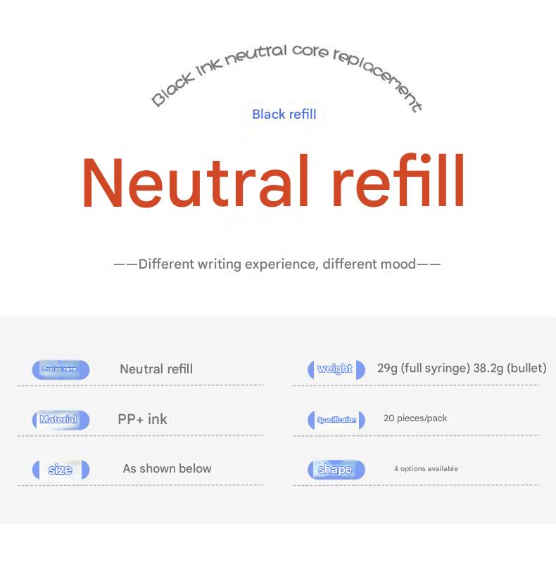 Designed for the meticulous writer, our retractable gel pen refills come in a pack of 20 to ensure you don't run out when you need them most. Featuring a quick-dry ink formula, these refills minimize smudges and smears, making your writing look professionally neat. The 0.5mm fine point creates precise, flawless lines suitable for a variety of writing tasks from note-taking to document signing. Their universal design makes them compatible with most retractable gel pens. Constructed from non-toxic, robust PP material, these refills are made to last and provide consistent, superior performance. Ideal for students, office workers, and anyone who values high-quality writing tools.