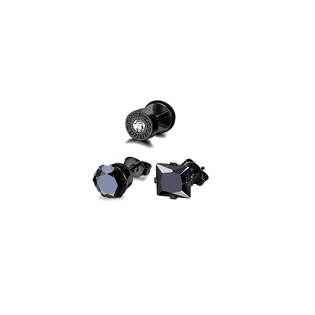 Stylish Black Stainless Steel Ear Studs Set for Men and Women – Versatile Geometric Fashion Earrings