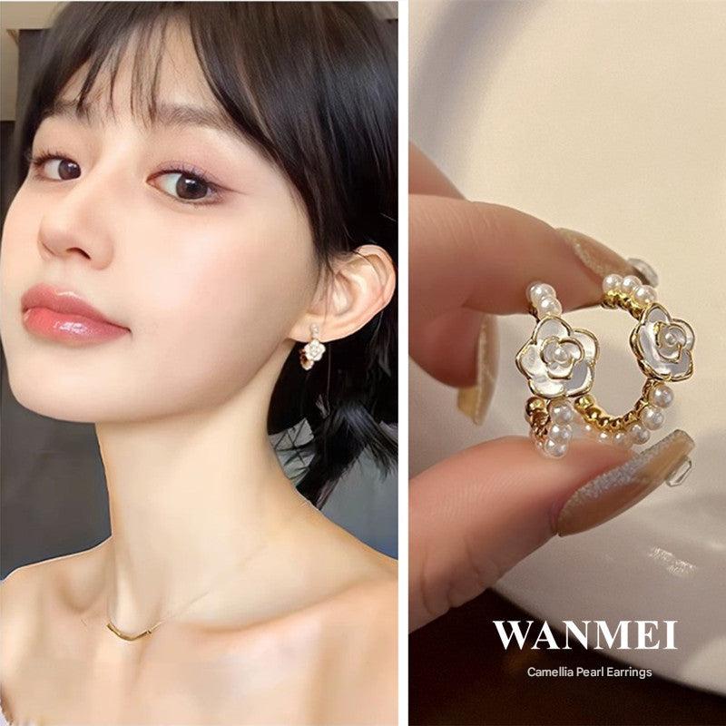 Stylish Camellia Pearl Earrings for Women - 2023 Trendy Silver Studs