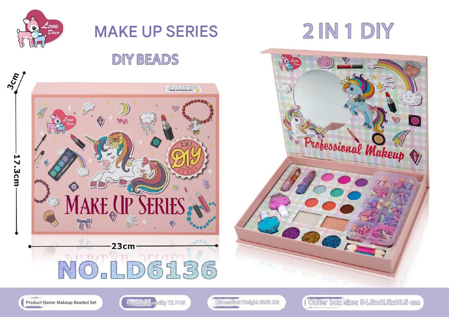 Set Includes Lipsticks, bead kit, makeup items, toy mirror