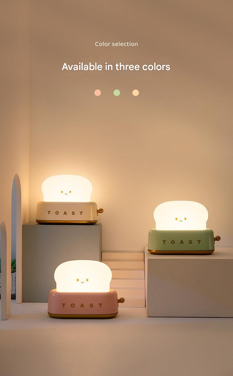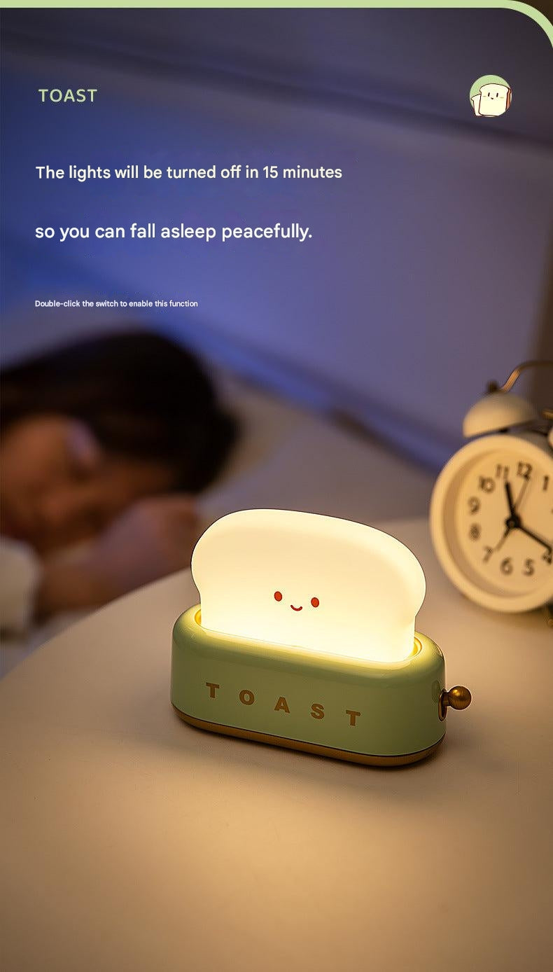 USB Charging Toast Bread Night Light - Cute Bedroom Touch-Sensitive Bedside Lamp