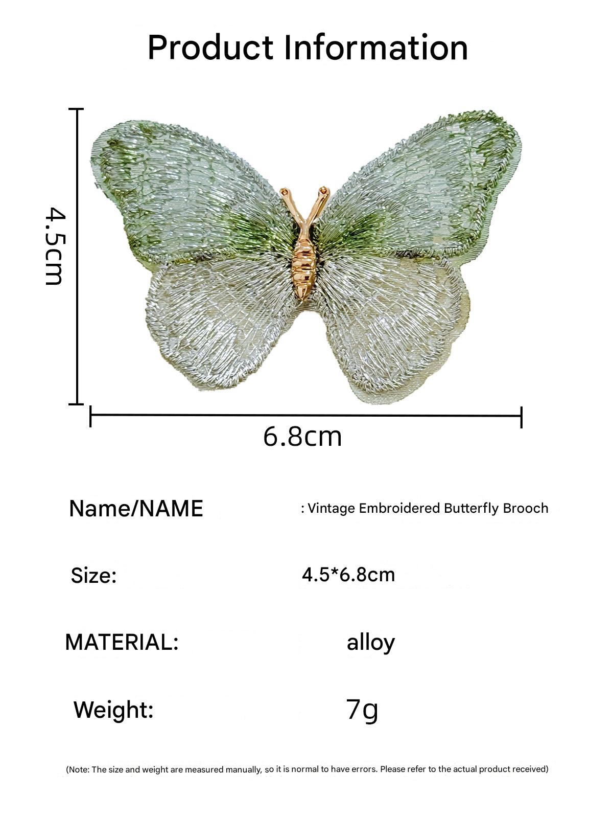 Vintage Embroidered Butterfly Brooch - Elegant Fashion Accessory for Women
