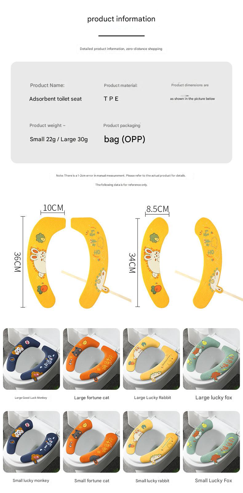 This waterproof universal toilet seat cushion is designed to enhance your bathroom experience with added comfort and style. Made from durable non-woven fabric, it fits most standard toilet seats and is easy to install. With its cute designs such as the Lucky Rabbit and Wealthy Cat, this cushion not only provides functionality but also livens up your bathroom decor. The easy-to-clean material ensures that maintaining hygiene is a breeze, making it ideal for year-round use. Whether it's for a chilly winter morning or a hot summer day, you'll appreciate the extra comfort this cushion offers.